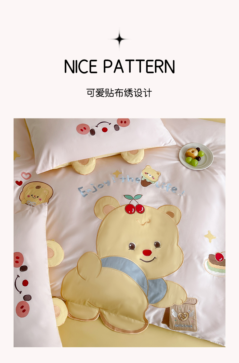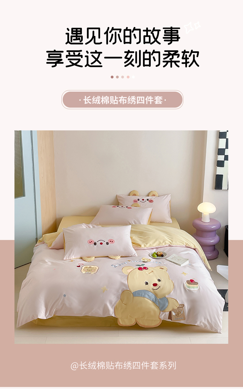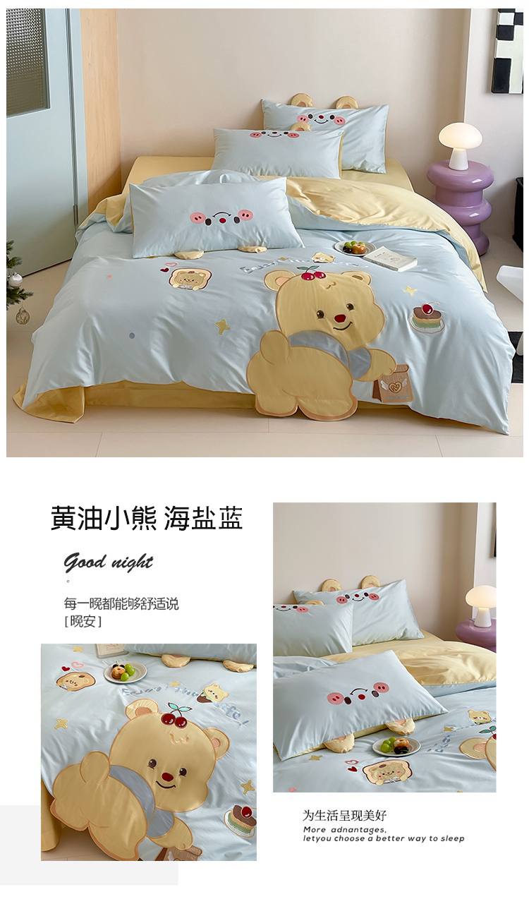 (总)紫桐2025新款长绒棉贴布绣四件套,黄油小熊 海盐蓝,黄油小熊 奶油黄,黄油小熊 芝芝粉
