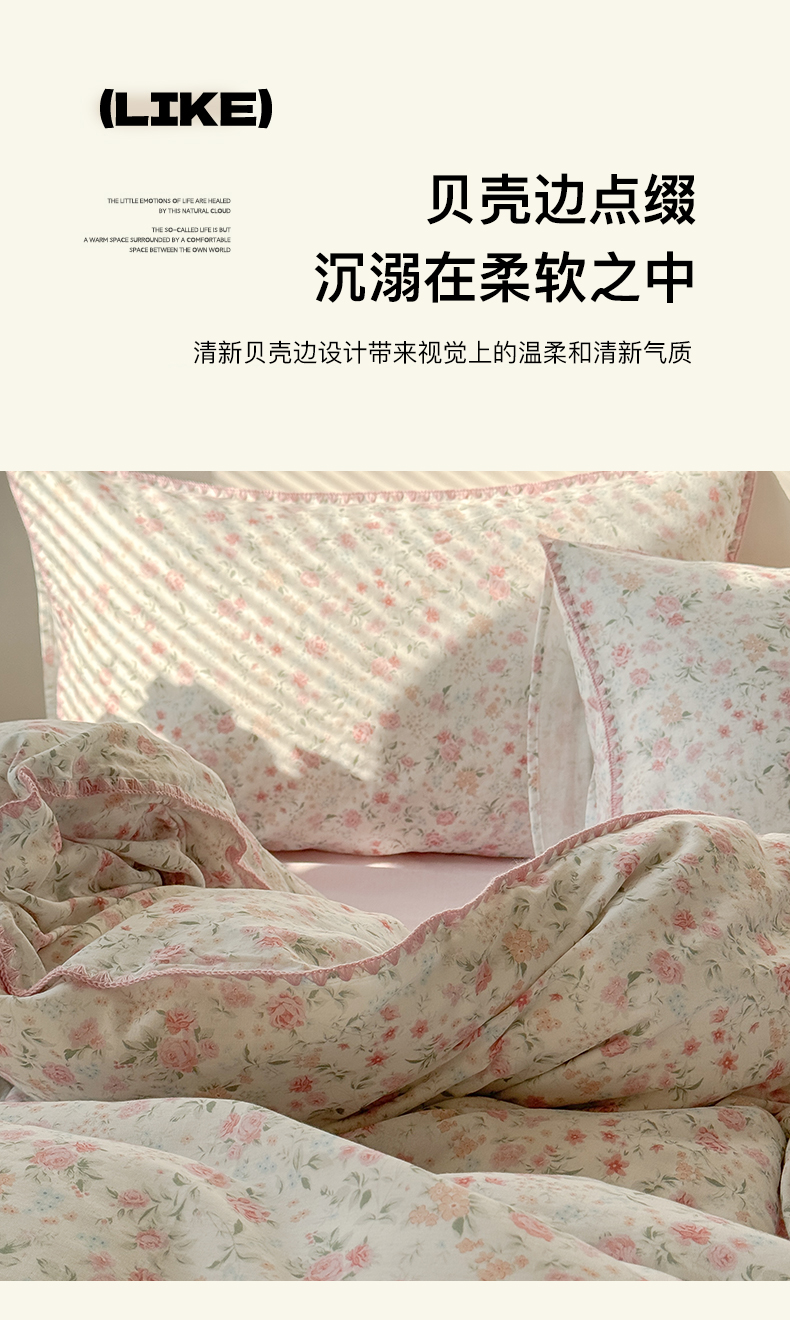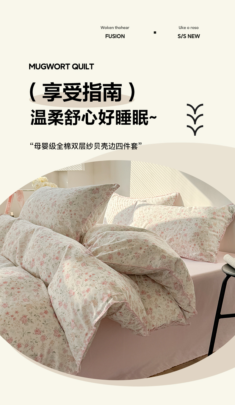 当前位置: 91家纺网 > 商品网购 > 床品套件 > 四件套 > 全棉普通四件套 > 2025全棉双层纱贝壳边四件套 花序