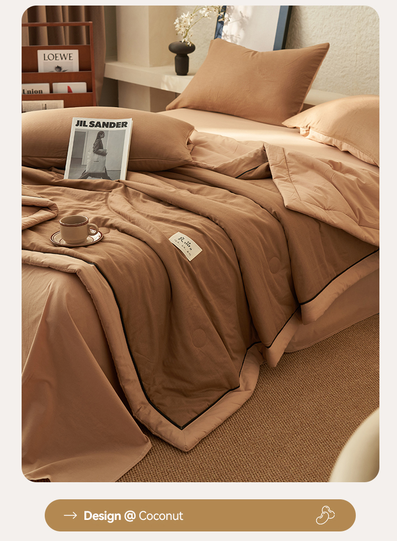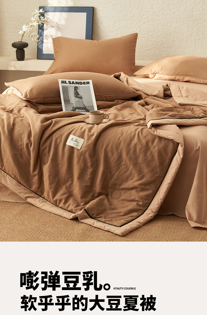 当前位置: 91家纺网 > 商品网购 > 床品套件 > 四件套 > 全棉普通四件套 > 2025新款新款A类纯棉双层纱大豆夏被四件套全棉空调被 咖啡色
