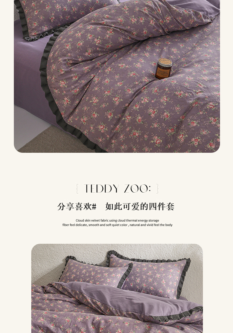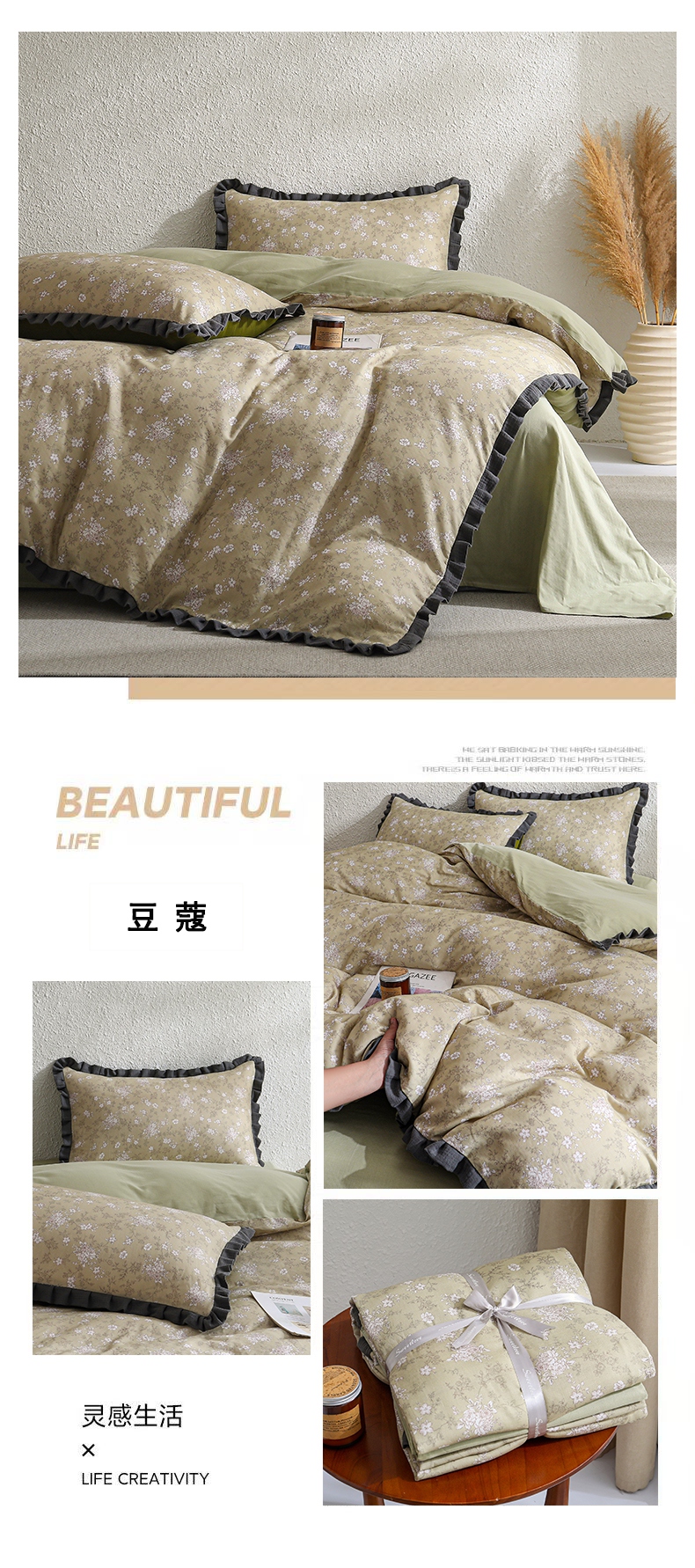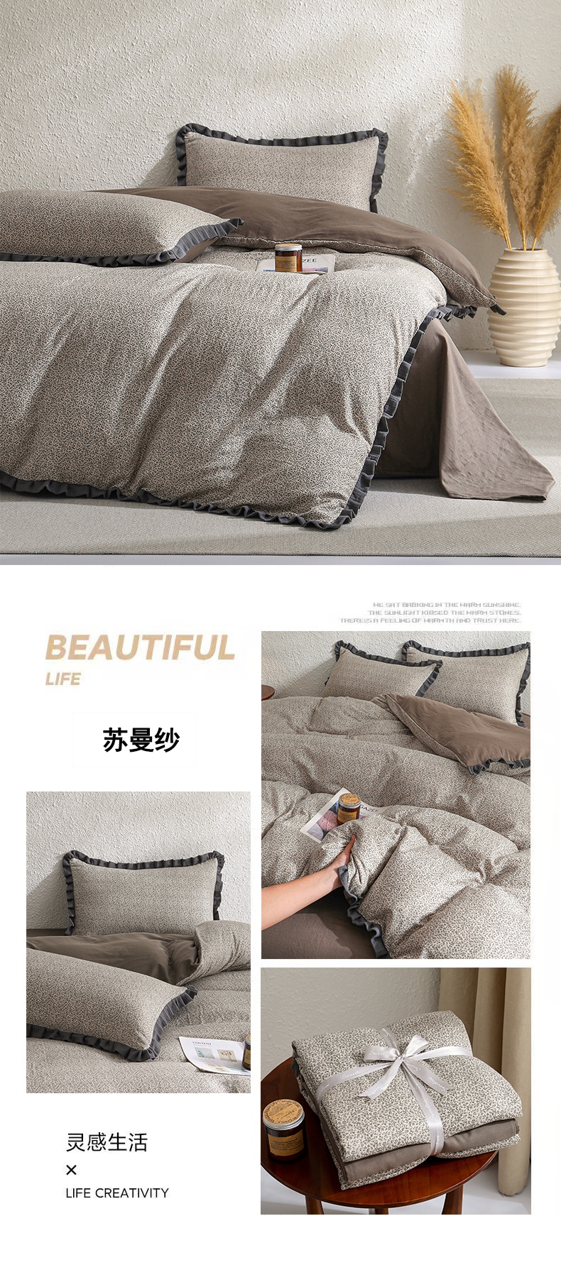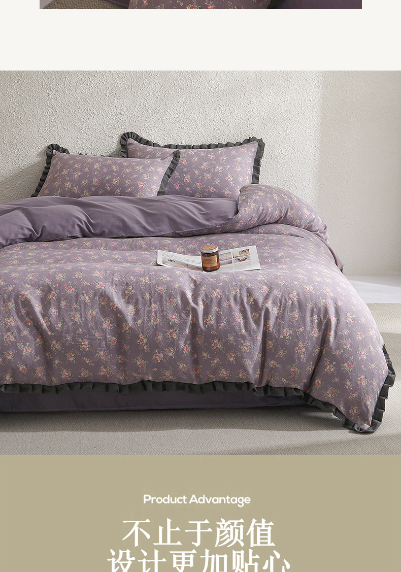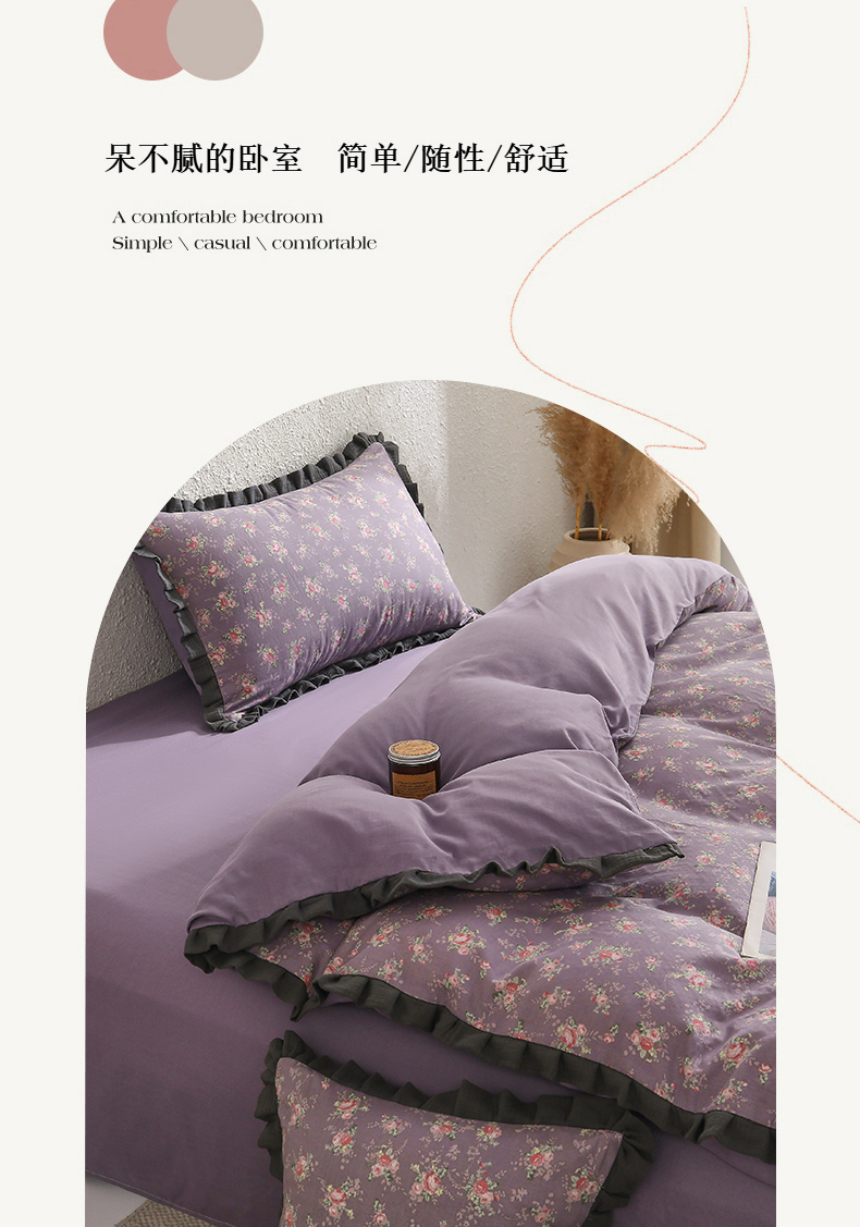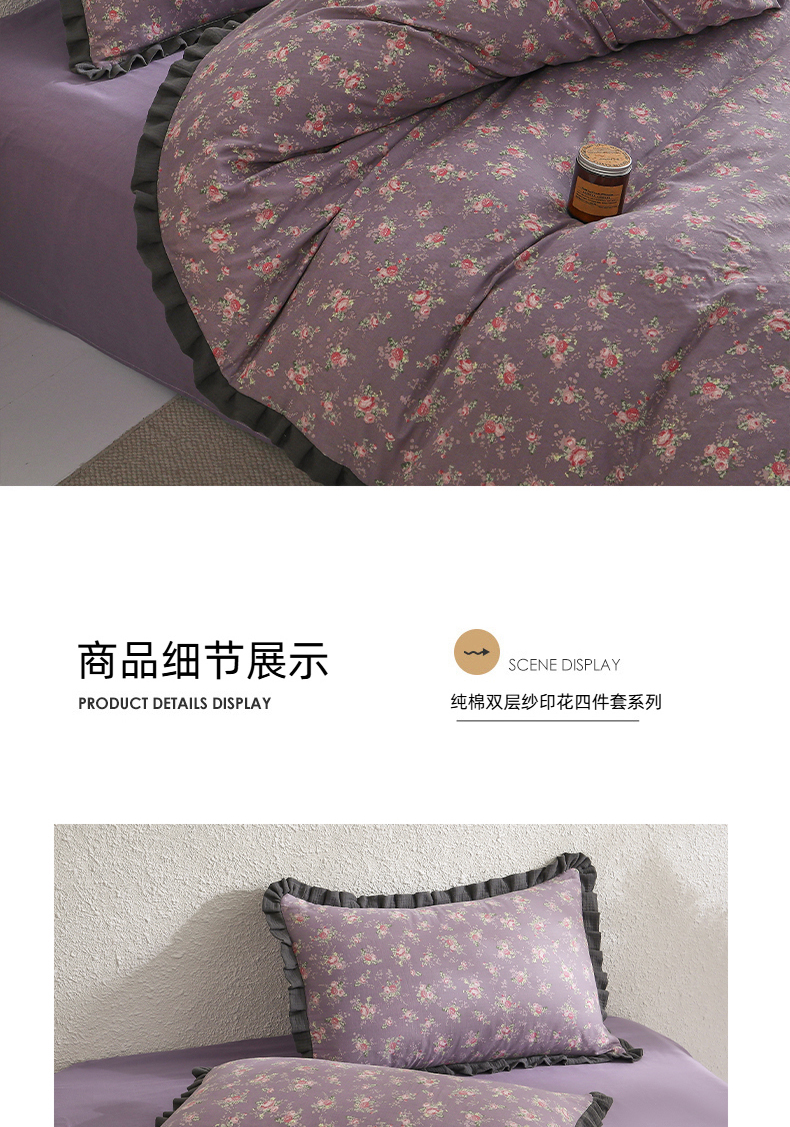 商品名称:2025新款A类纯棉双层纱皱皱纱花边四件套(复古风) 豆蔻