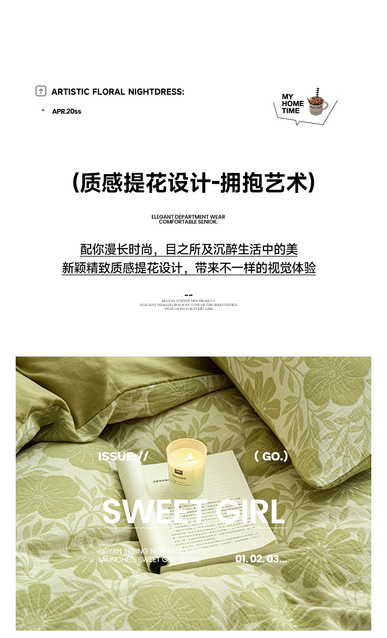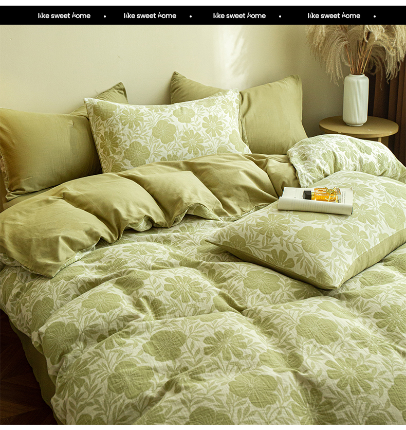 (总)沐棉家居 2025新款亲肤舒适全棉纯棉提花四件套,春田,菱格咖,菱格米-灰,菱格奶咖,涂鸦米-绿