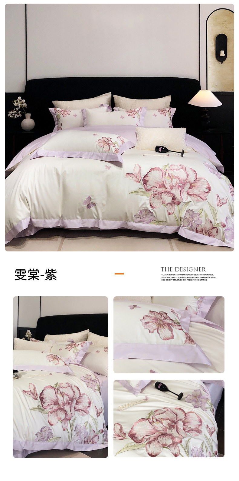 商品名称:2025新款全棉50s绣花刺绣款四件套 雯棠-兰