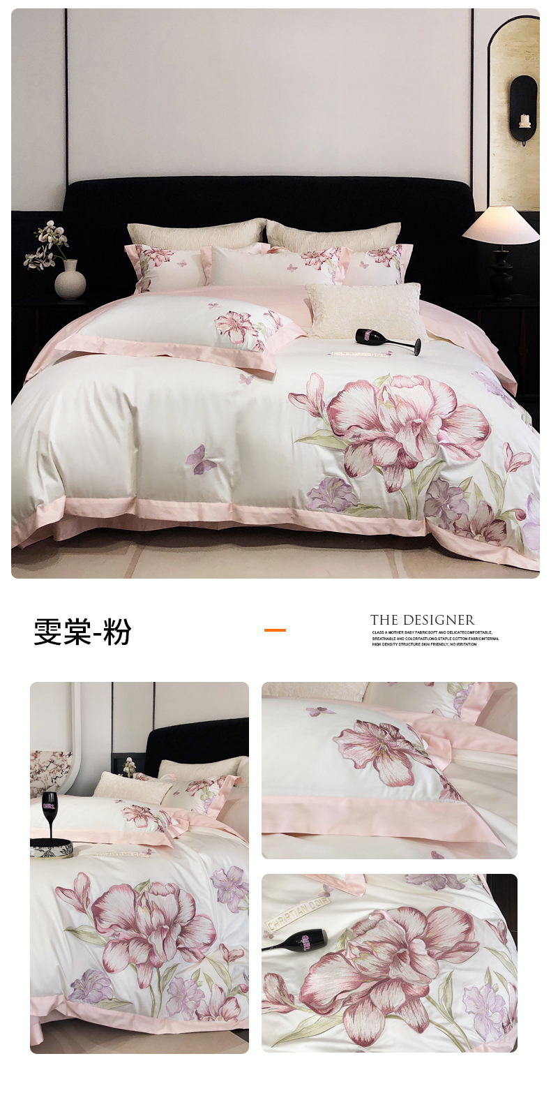 (总)慕晨家纺 2025新款高密全棉40s重工刺绣简奢高端纯棉四件套直播礼盒装,晨雾花漾 粉,晨雾花漾 驼,晨雾花漾 紫,粉红花语 粉,粉红花语 兰,华韵流年 白,华韵流年 粉,华韵流年 灰,华韵流年 兰