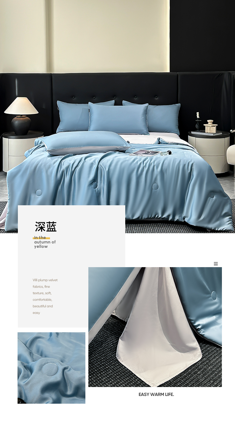 当前位置: 91家纺网 > 商品网购 > 床品套件 > 四件套 > 夏被四件套 > 金鹰 2025新款A类莱赛尔50天丝拼色空调被大豆夏被四件套 深蓝
