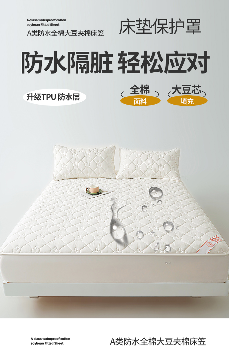 (总)伊人坊 2024新款原棉大豆夹棉防水床笠,原棉-浅驼色,原棉-清水绿,原棉-抹茶绿,原棉-素雅灰,原棉-樱花粉,原棉-珍珠白