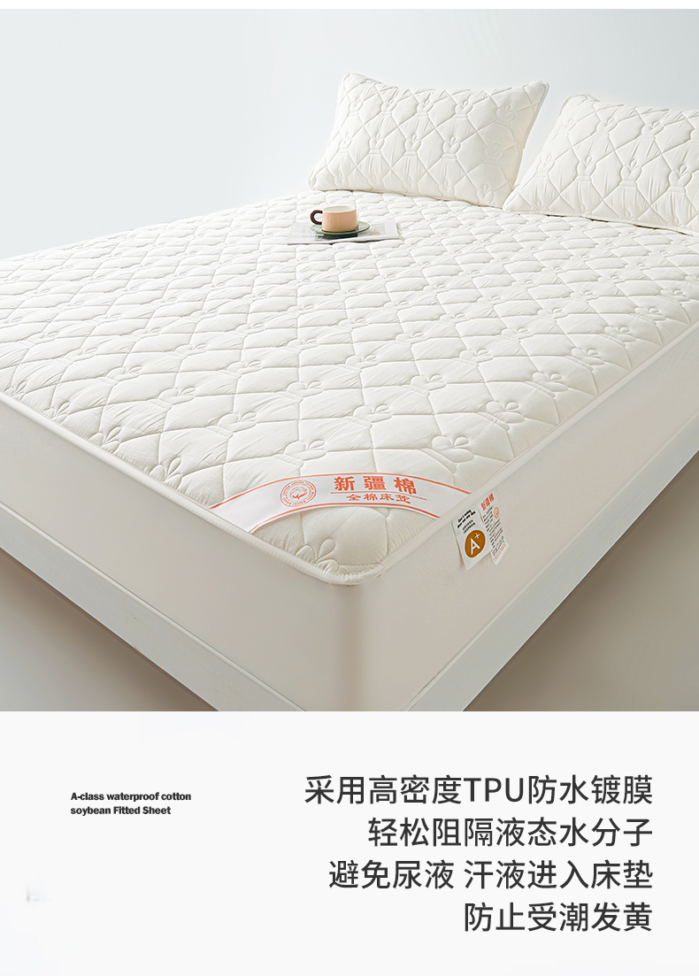 (总)伊人坊 2024新款原棉大豆防水床护垫,明月白,碧水青,布朗灰,玫瑰粉,米杏色,苹果绿