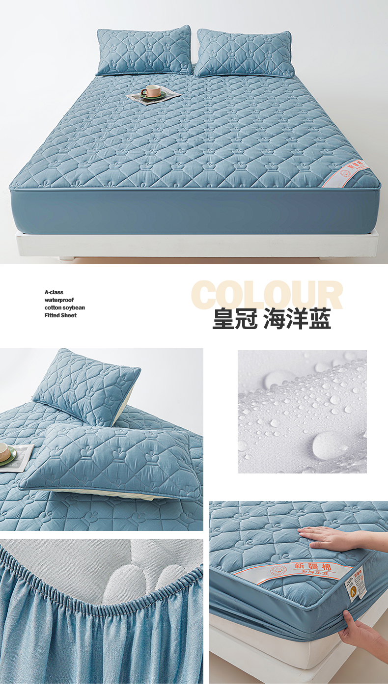 商品名称:伊人坊 2025新款全棉纯棉大豆夹棉床护垫-皇冠系列(防水款) 皇冠-海洋蓝