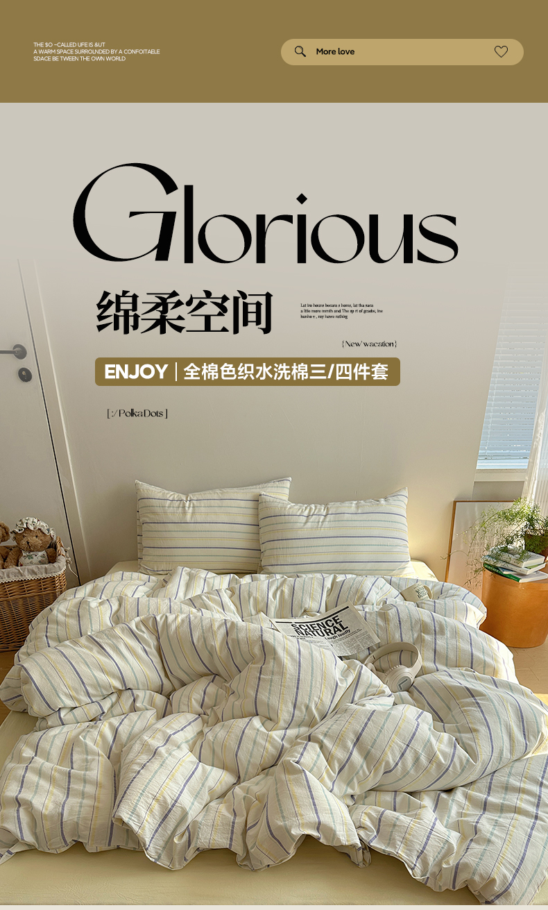 当前位置: 91家纺网 > 商品网购 > 床品套件 > 四件套 > 水洗棉四件套 > 艾咪-Amy ntmy 2025新款条纹款全棉色织水洗棉四件套 且乐紫