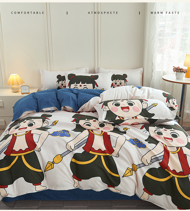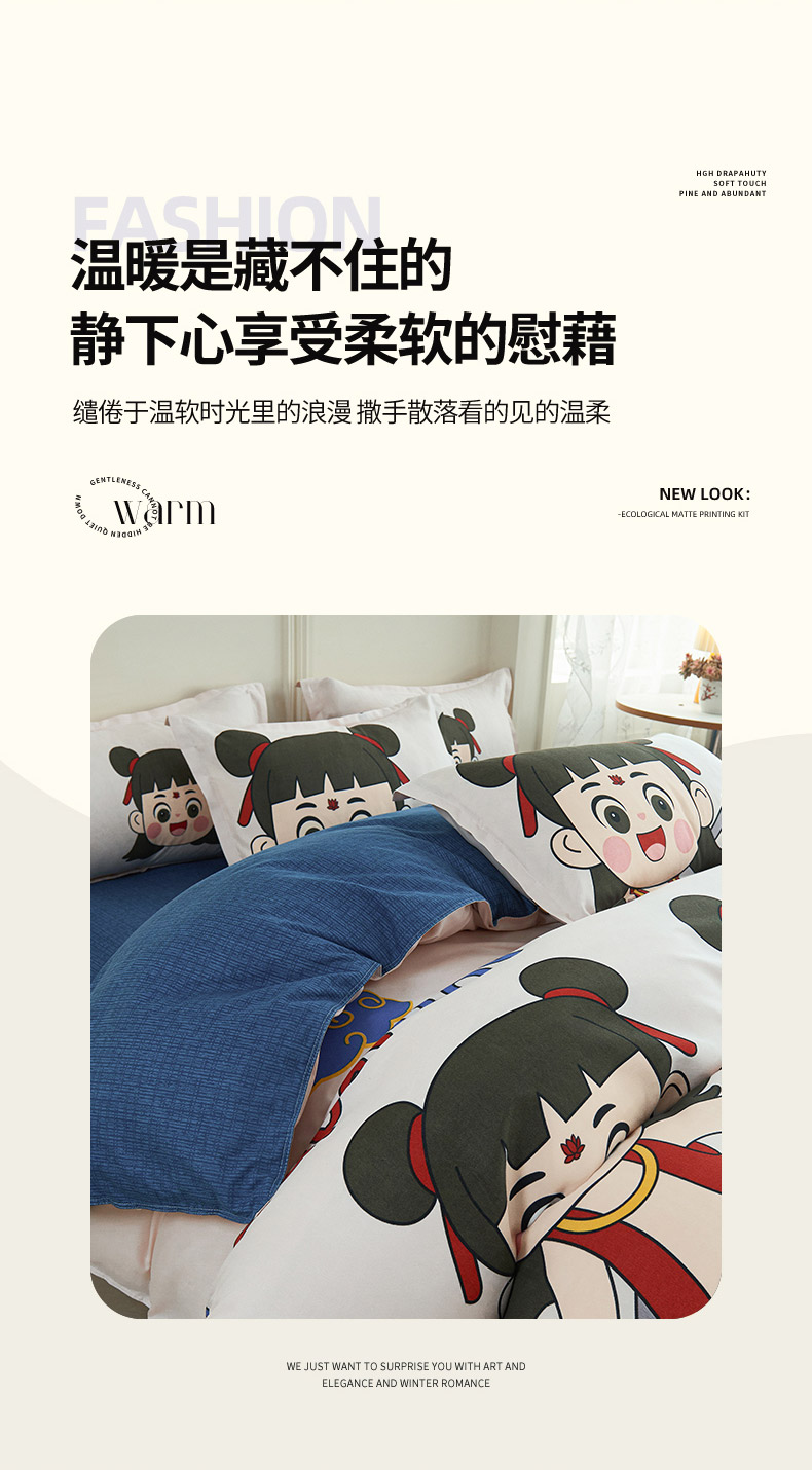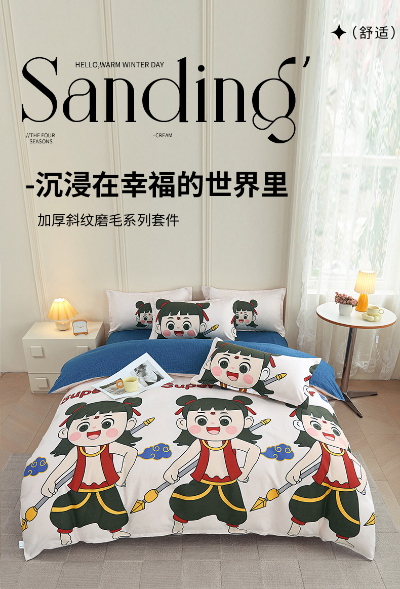 商品名称:爱诗诺2025加厚生态棉磨毛四件套高克重植物羊绒四件套大量现货少年英雄