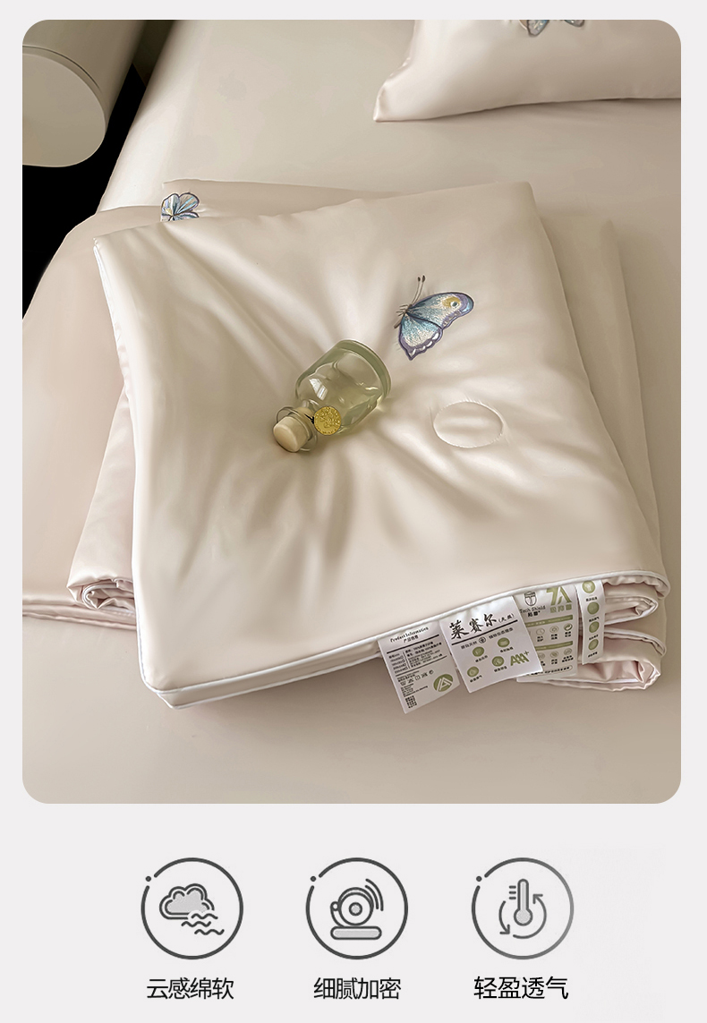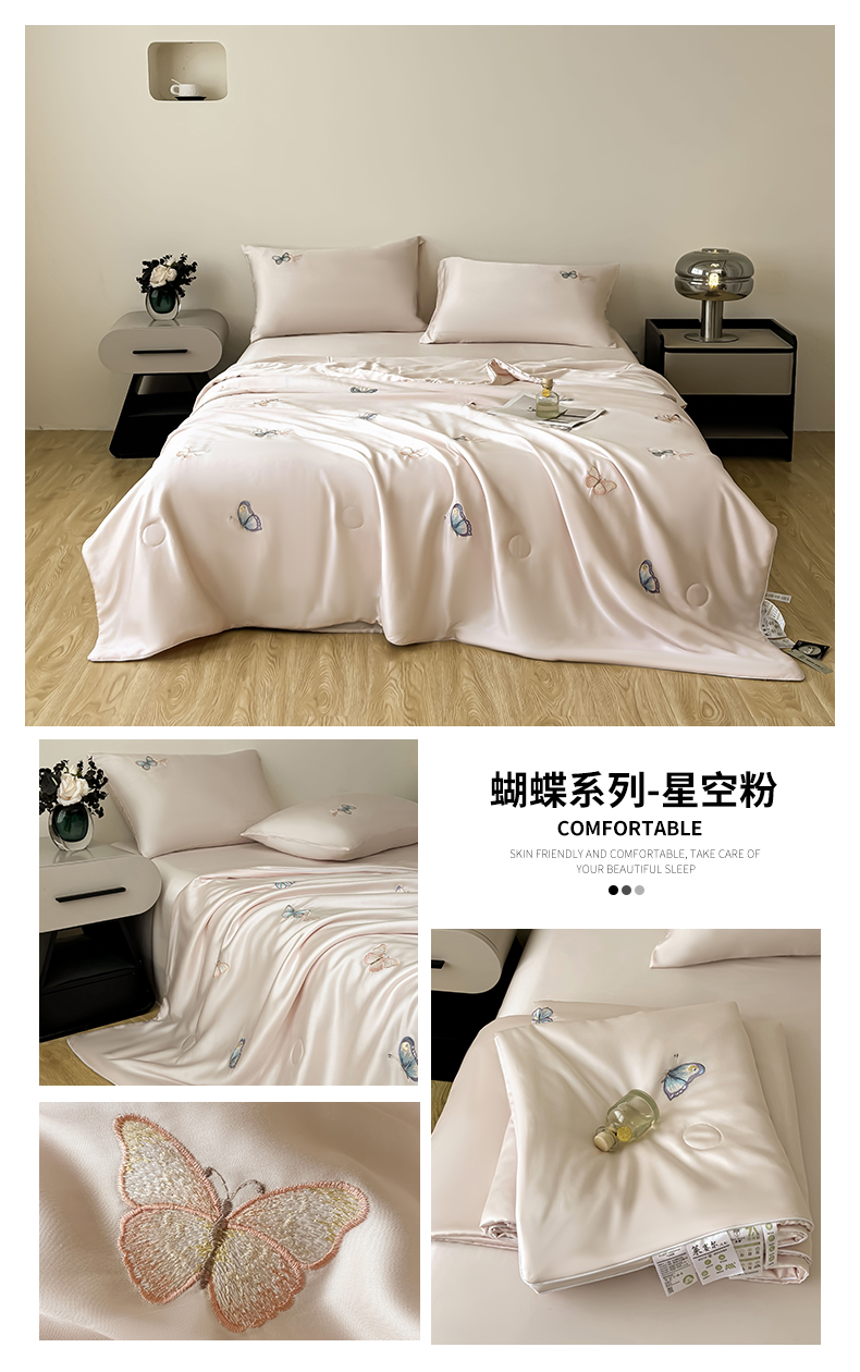 当前位置: 91家纺网 > 商品网购 > 床品套件 > 四件套 > 夏被四件套 > 雯豆家纺 2025夏季新品莱赛尔兰精天丝绣花刺绣夏被空调被四件套冰丝凉感薄被子 蝴蝶系列-星空粉