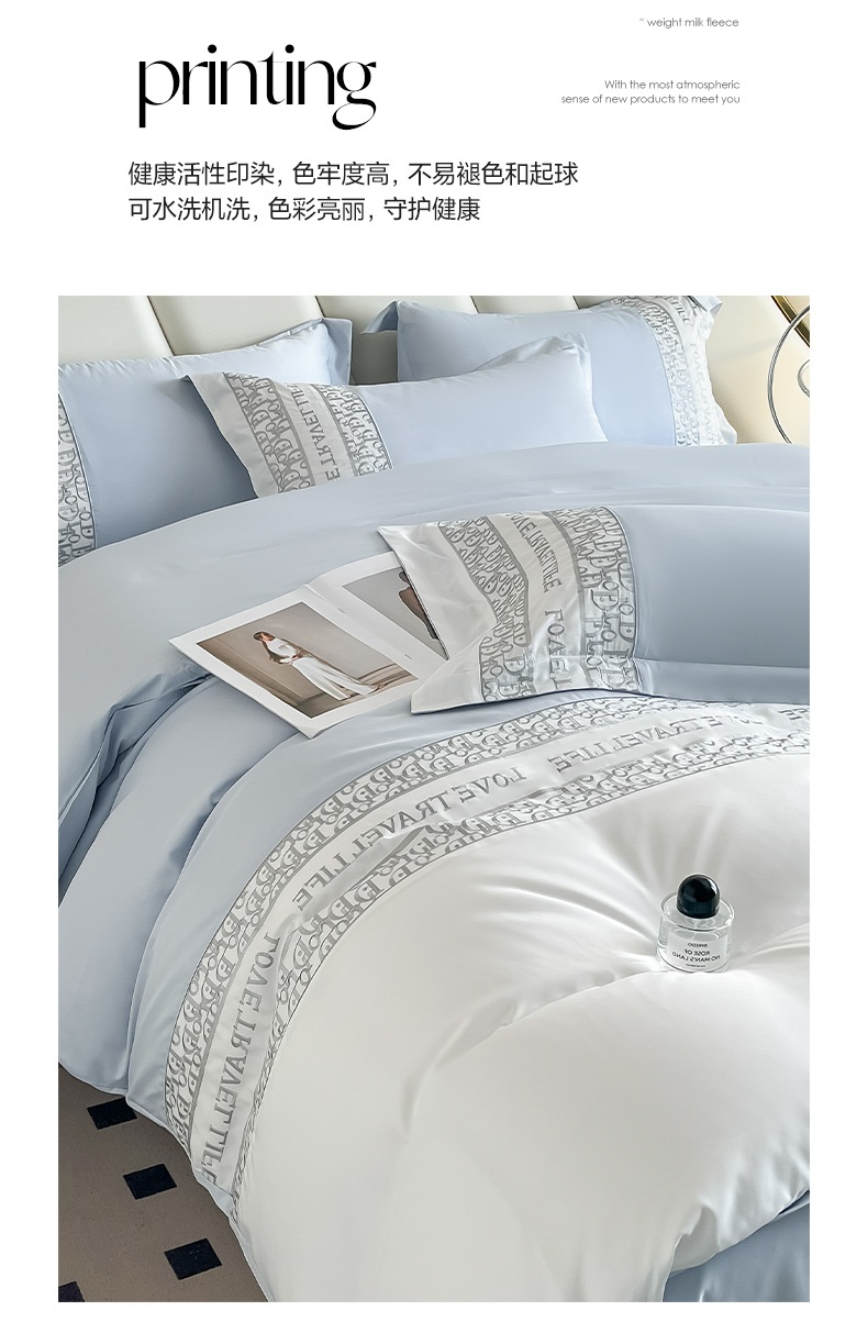 yyds网供 2025新款礼盒装水洗冰丝拼接刺绣法式奢四件套AB版双拼春夏[礼盒装,会员-5] 绣花拼接-轻奢灰