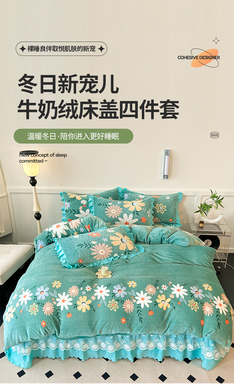当前位置: 91家纺网 > 商品网购 > 床品套件 > 四件套 > 牛奶绒四件套 > 珍爱家纺 2025新款冬季加厚夹棉保暖牛奶绒蕾丝花边床盖床裙单件三件套双人四件套 玫瑰兔