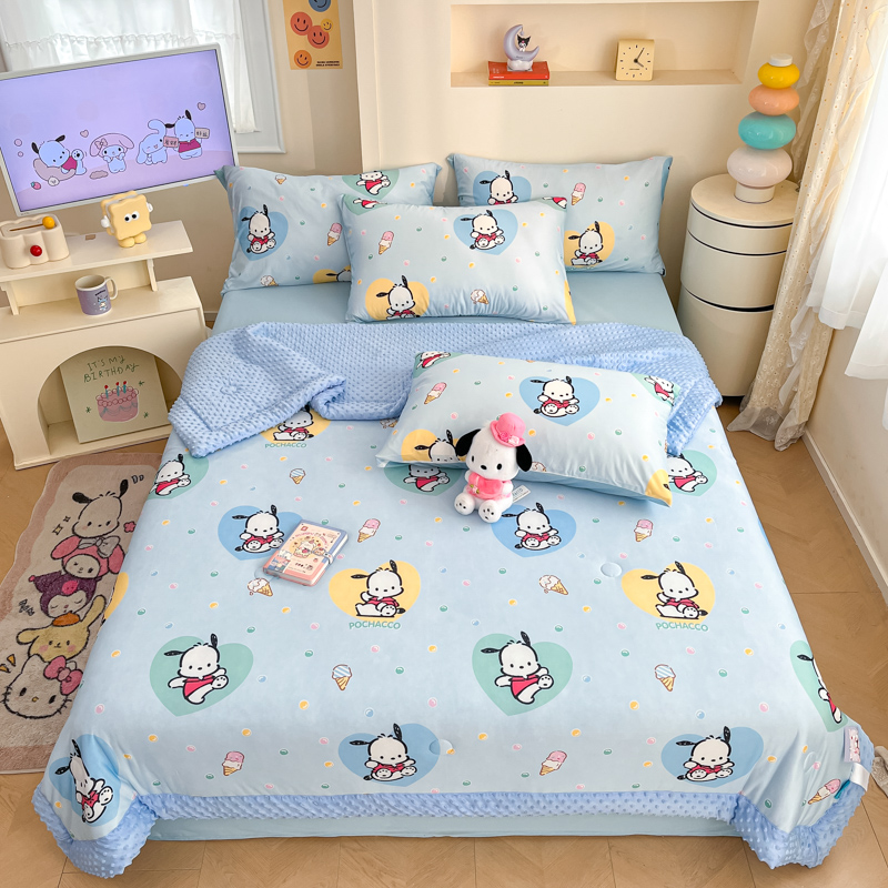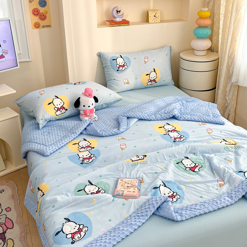 (总)花满路 2024新款有氨凉感丝卡通印花豆豆被儿童被夏被被子,玉桂狗,库洛米,KT猫,卡帕狗,米乐蒂