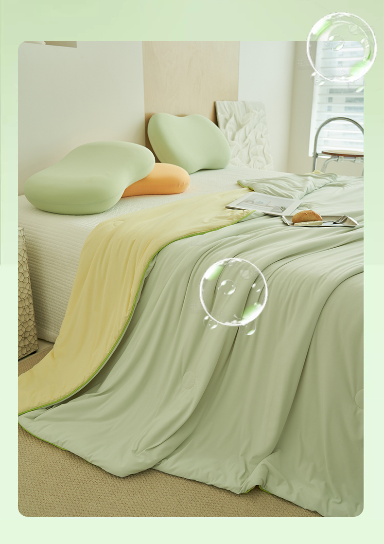 当前位置: 91家纺网 > 商品网购 > 床品套件 > 四件套 > 夏被四件套 > 2025新款凉感丝清凉大豆夏被夏凉被空调被大豆夏被凉席四件套-熊猫冻冻被 冻冻被-浅绿拼奶黄