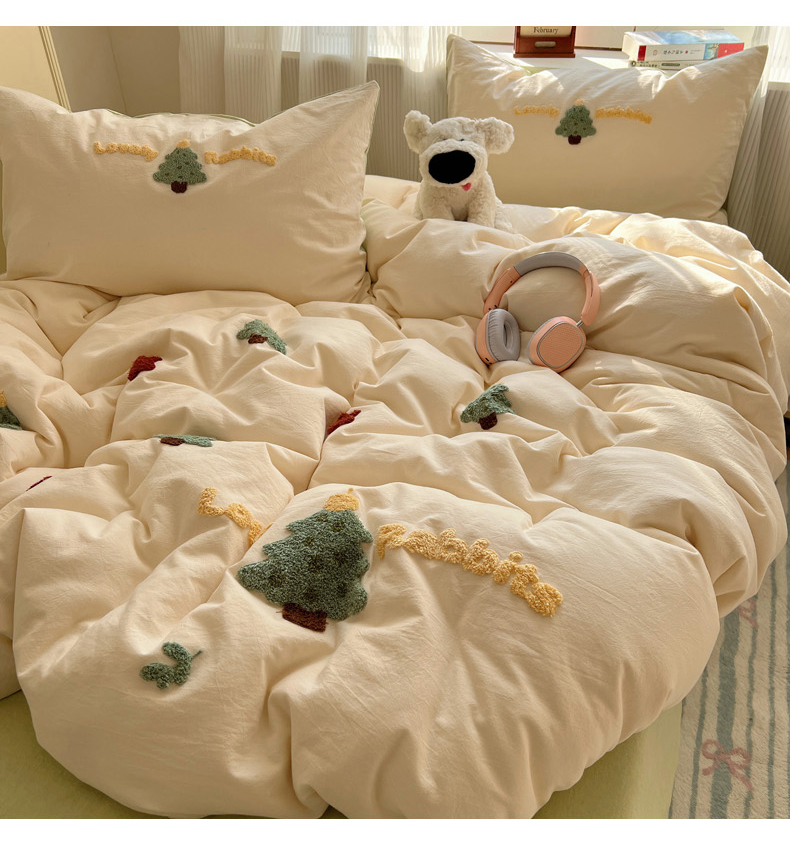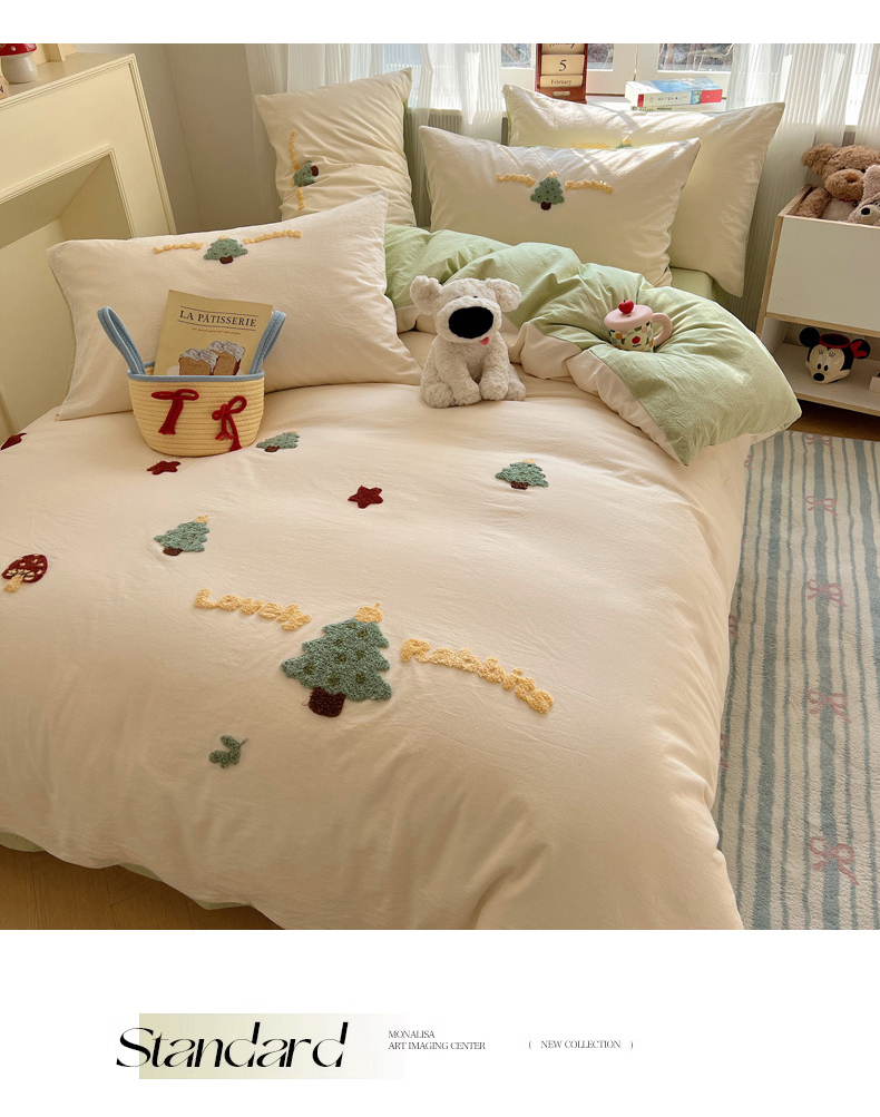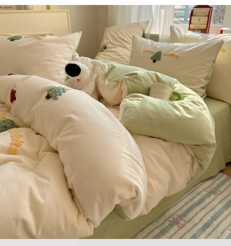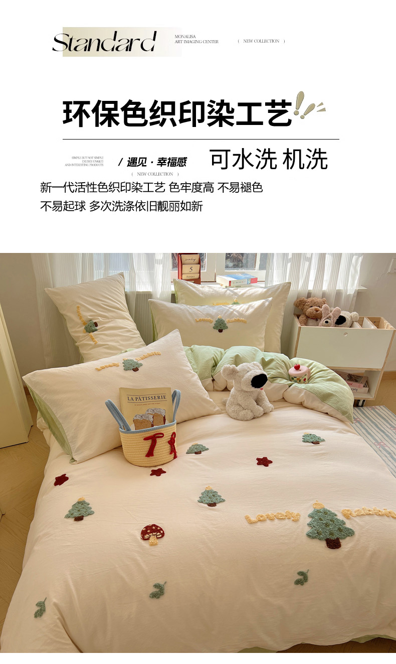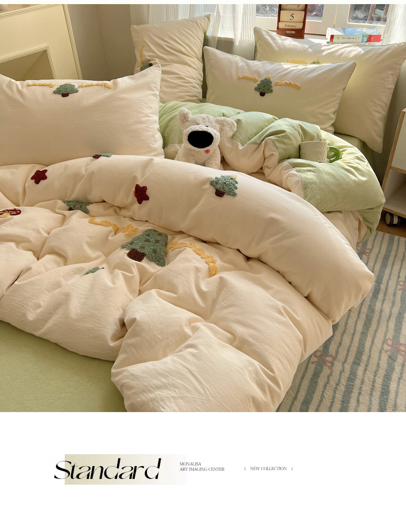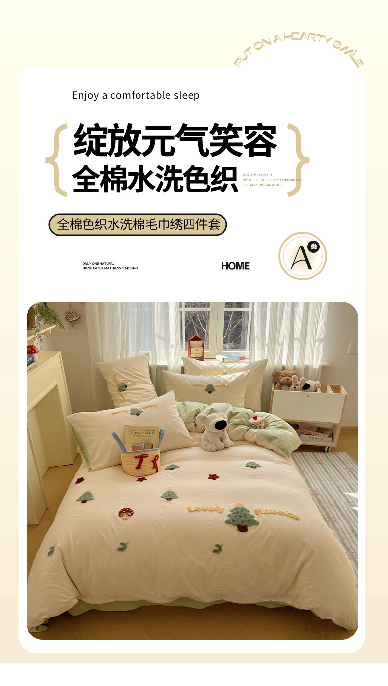 当前位置: 91家纺网 > 商品网购 > 床品套件 > 四件套 > 水洗棉四件套 > 慕尚家纺 2025新款春夏新款色织水洗棉毛巾绣四件套 圣诞树 绿