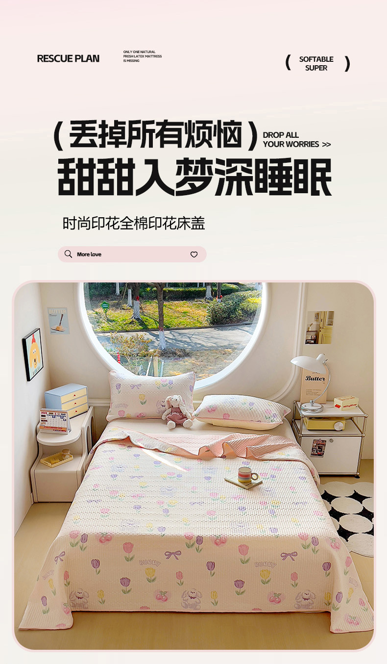 商品名称:(总)昊川家纺 2025新款时尚印花全棉床盖单被套四件套学生床盖套件