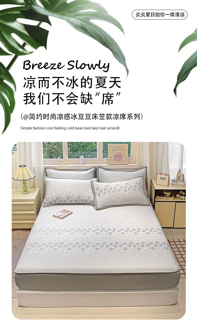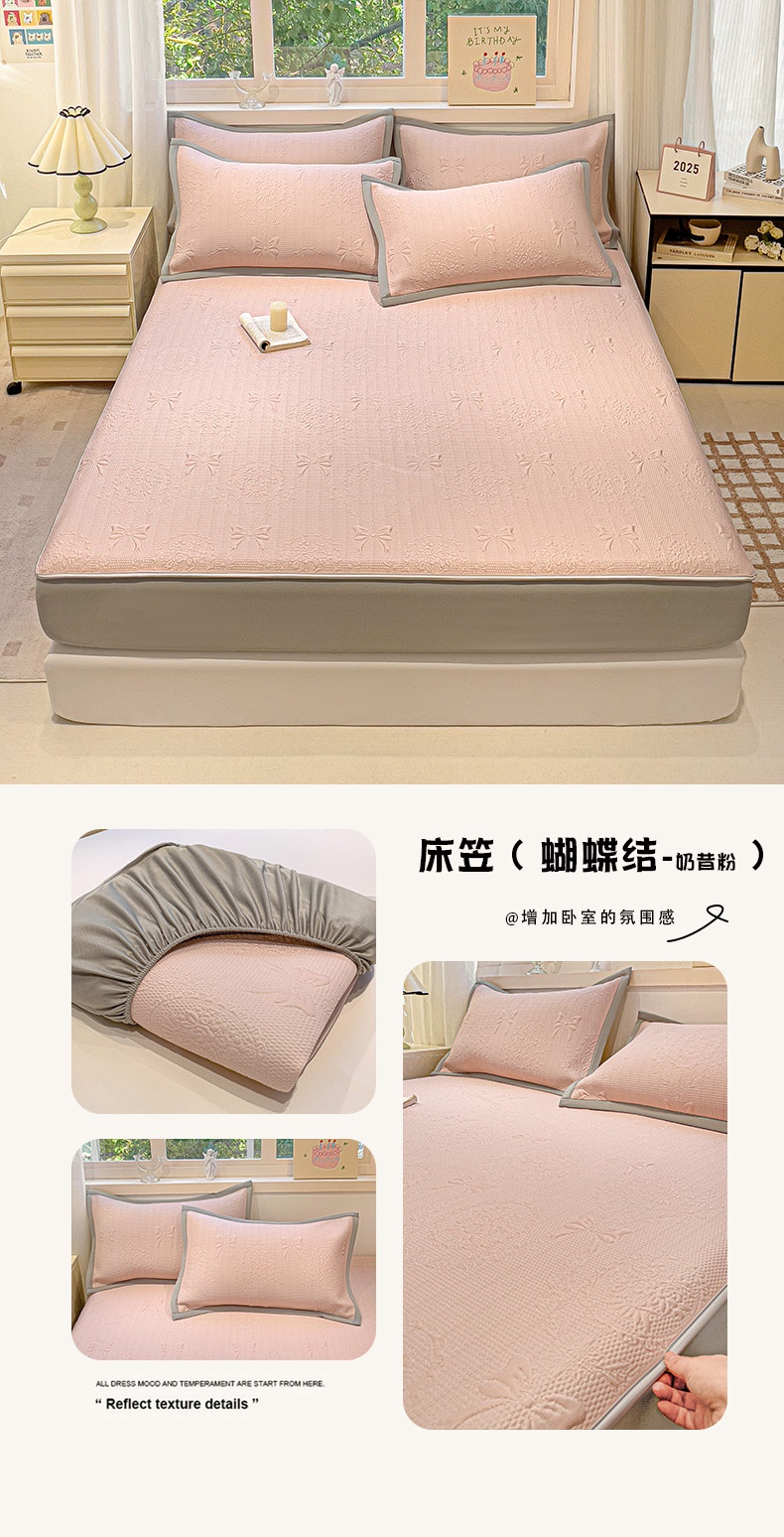 • 91家纺网 家纺一手货源 找家纺 富馨莱 2025新款A类480克PE凉感凉豆豆凉席三件套和单件床笠款 蝴蝶結-奶昔粉