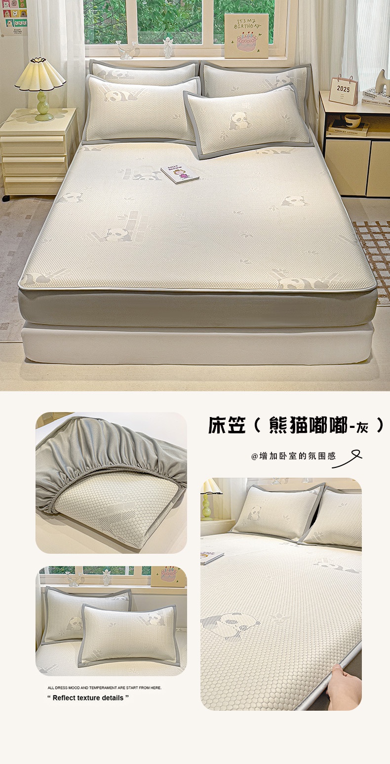 富馨莱 2025新款A类480克PE凉感凉豆豆凉席三件套和单件床笠款 蝴蝶結-奶昔粉