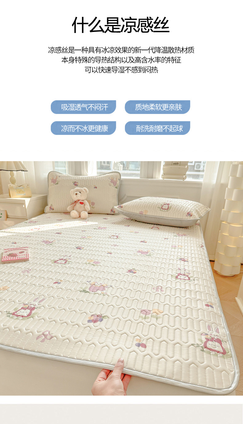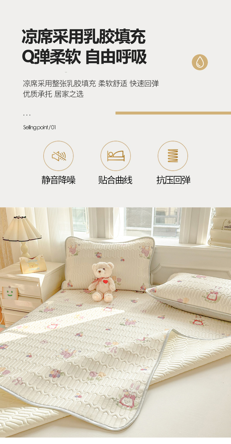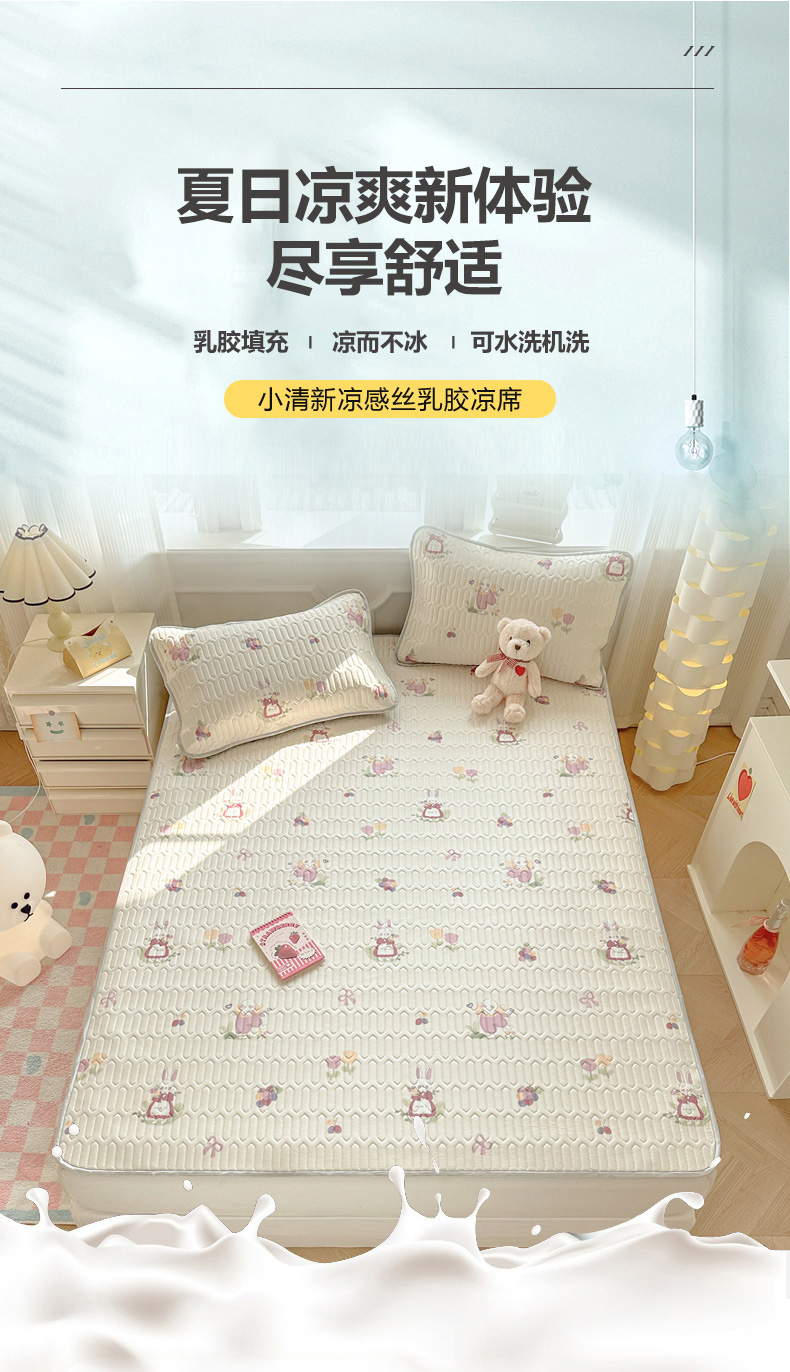 商品名称:慕尚家纺 2025新款小清新凉感丝乳胶席 紫藤小兔