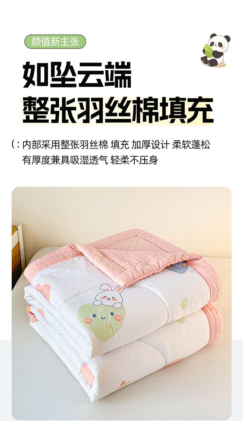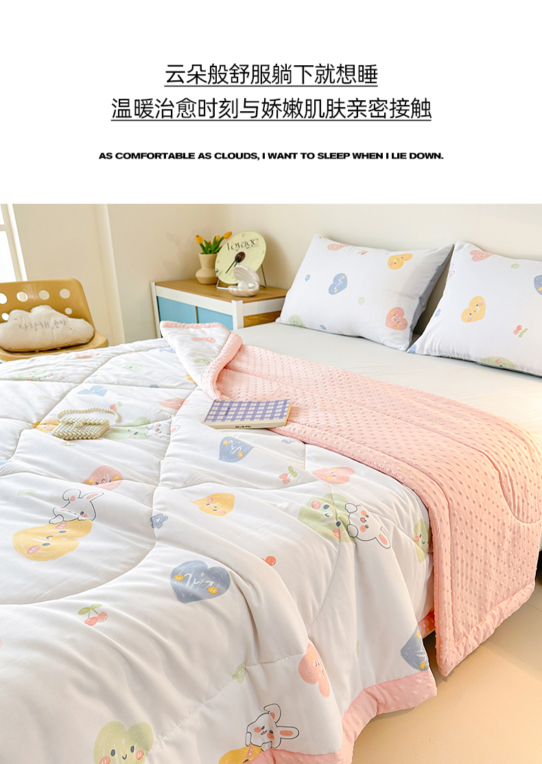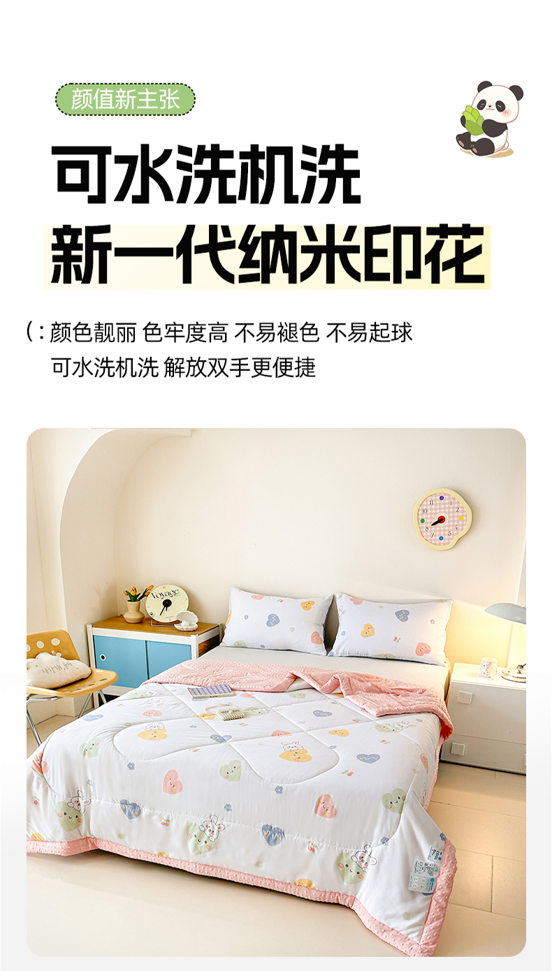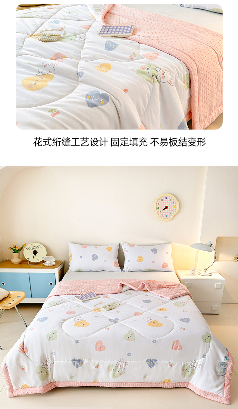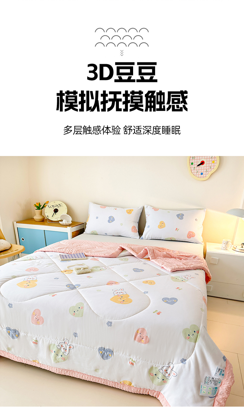 商品名称:壹张床 2025新款A类水洗棉3D豆豆夏被子被芯(提供买家秀) 开心小兔