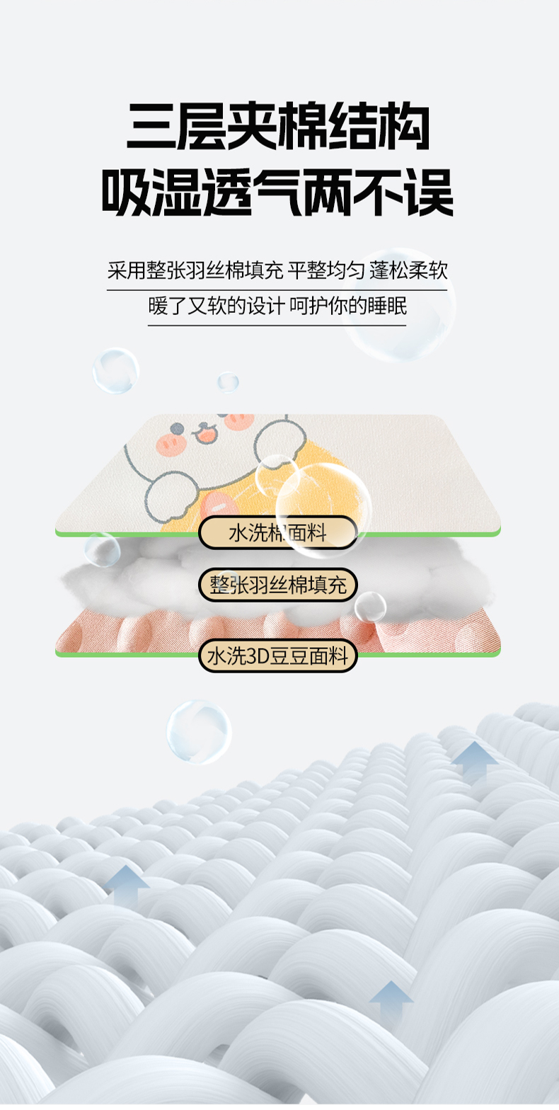 壹张床 2025新款A类水洗棉3D豆豆夏被子被芯(提供买家秀) 开心小兔