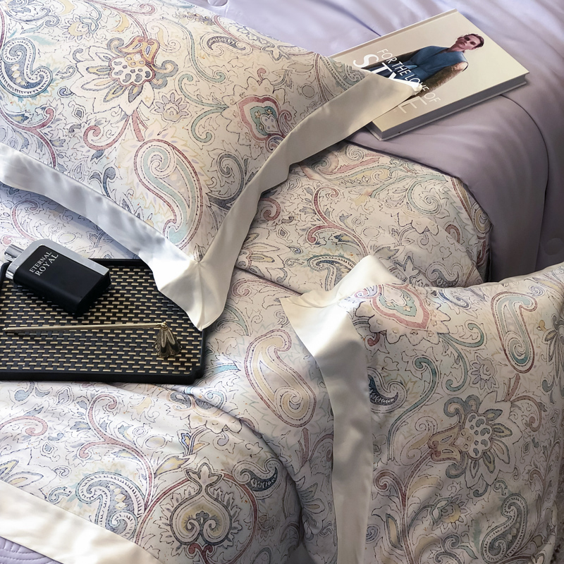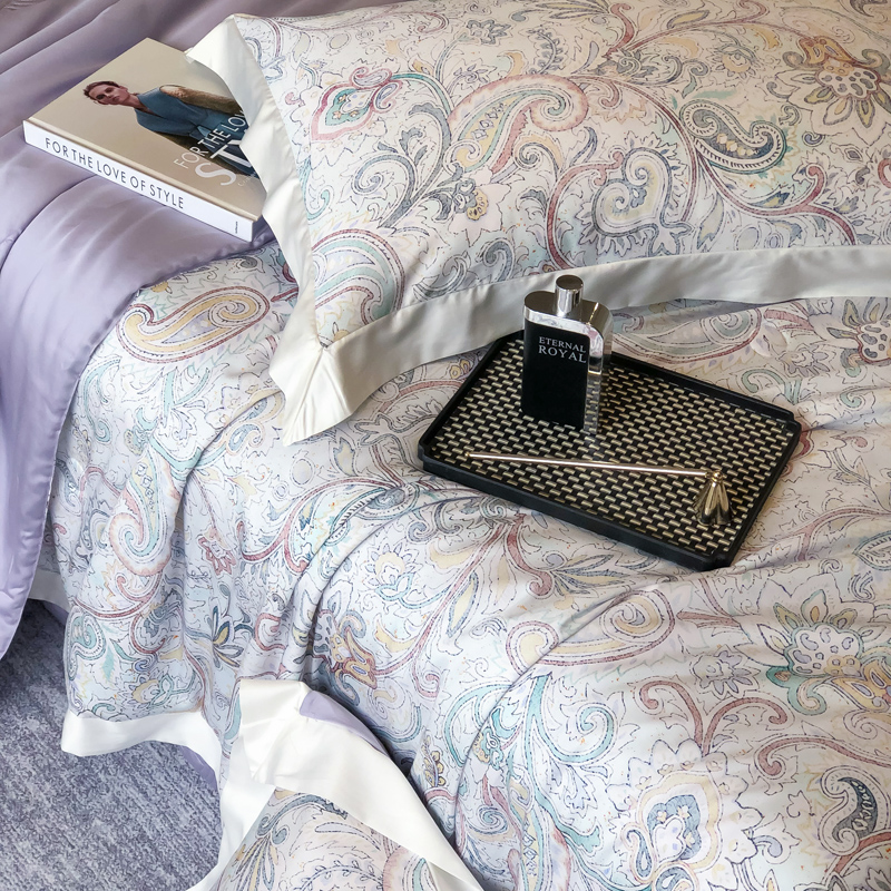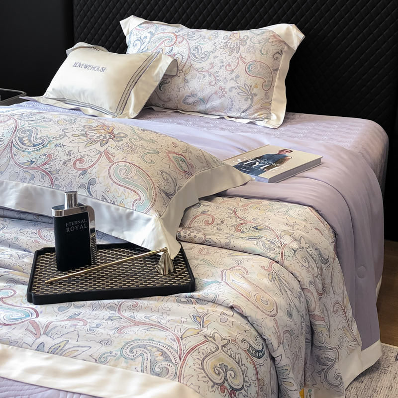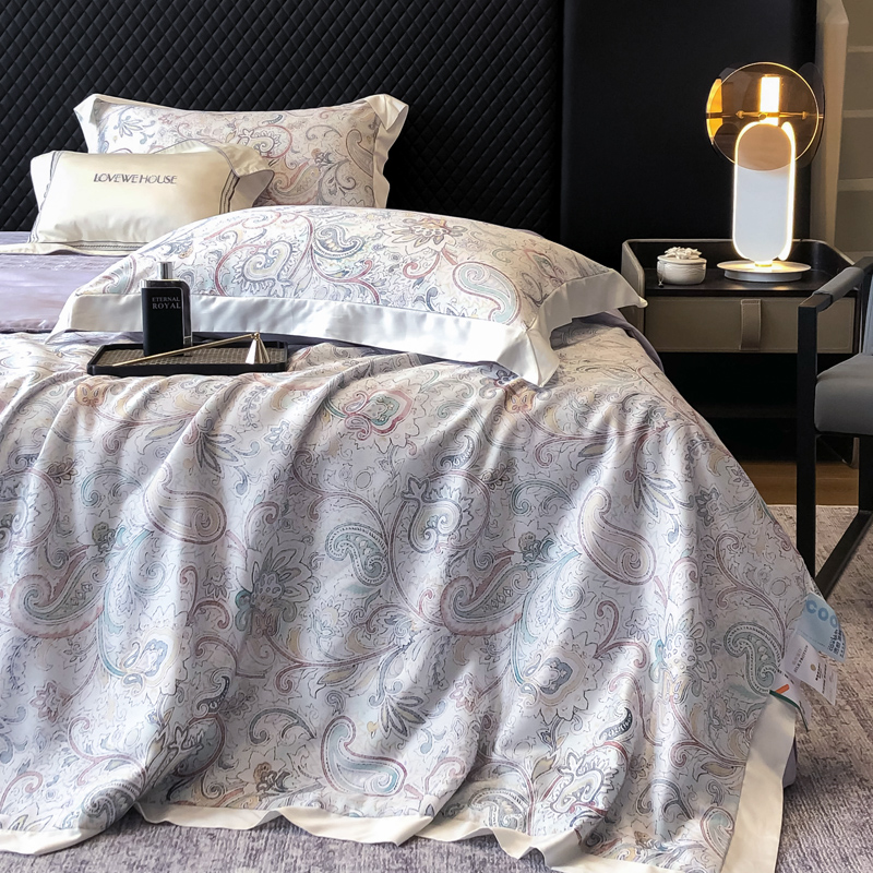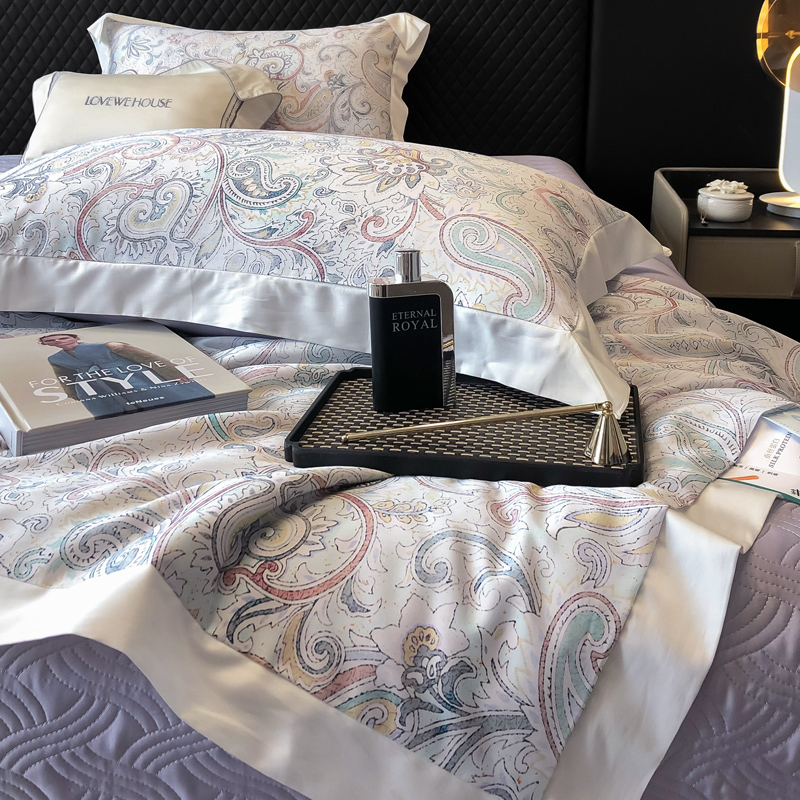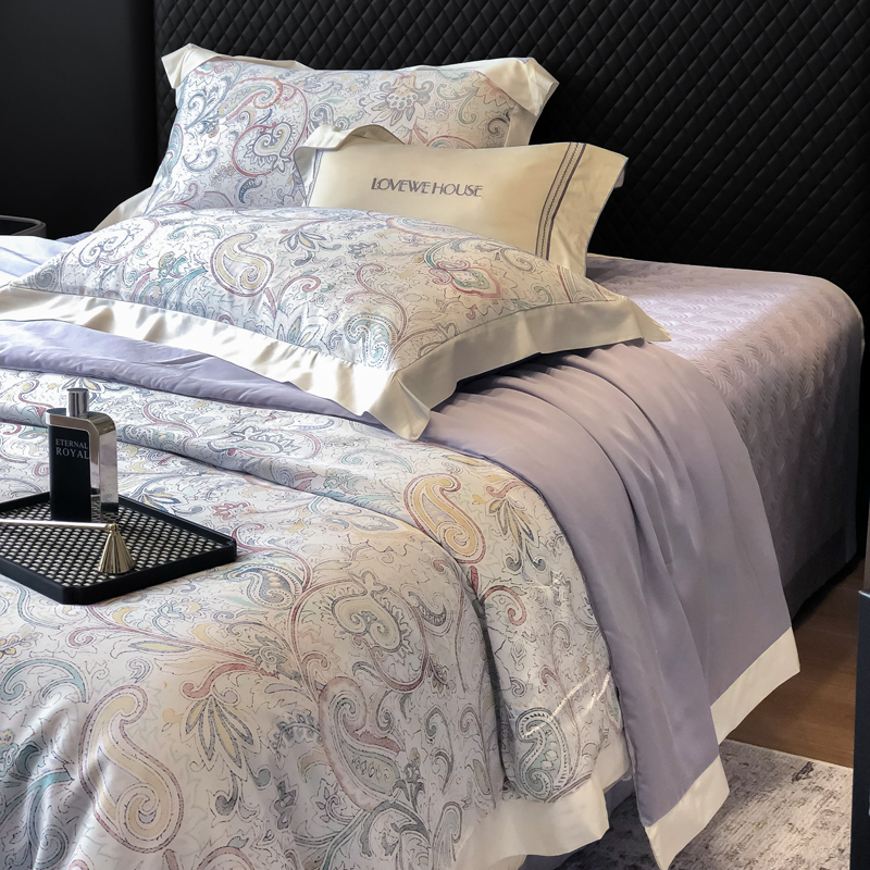 (总)若未家居 LOVEWE HOUSE 2026新款100S数码印花轻奢风四件套-波澜,波澜 爵士灰,波澜 公主粉,波澜 贝拉橘