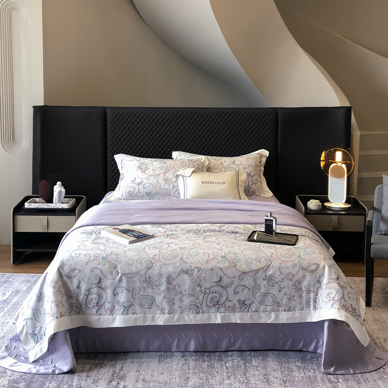 (总)若未家居2023新款轻奢意式50支全棉长绒棉四件套-水墨,贵族白,雾棕,烟蓝