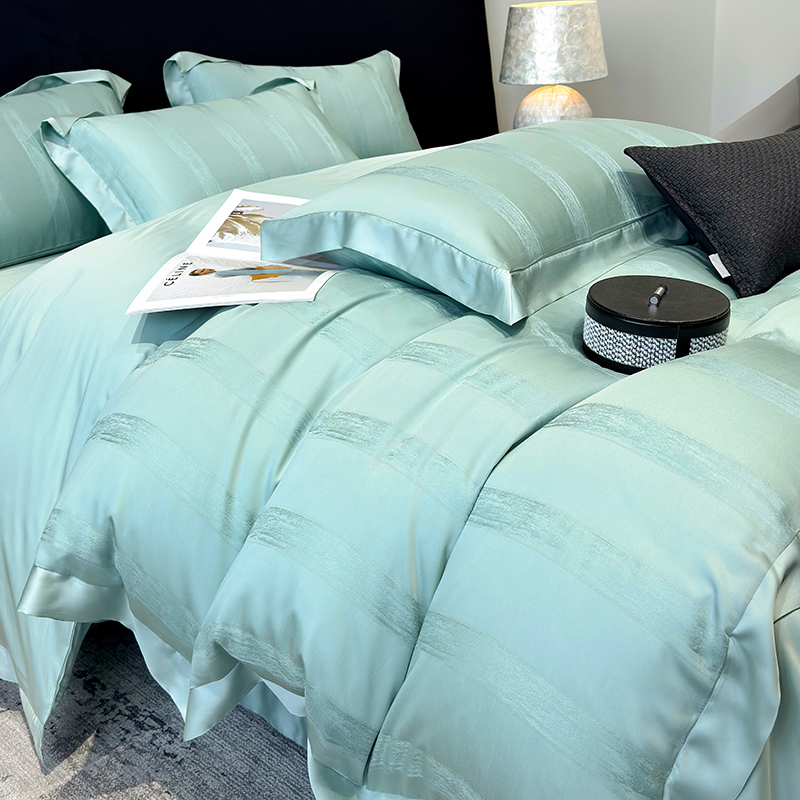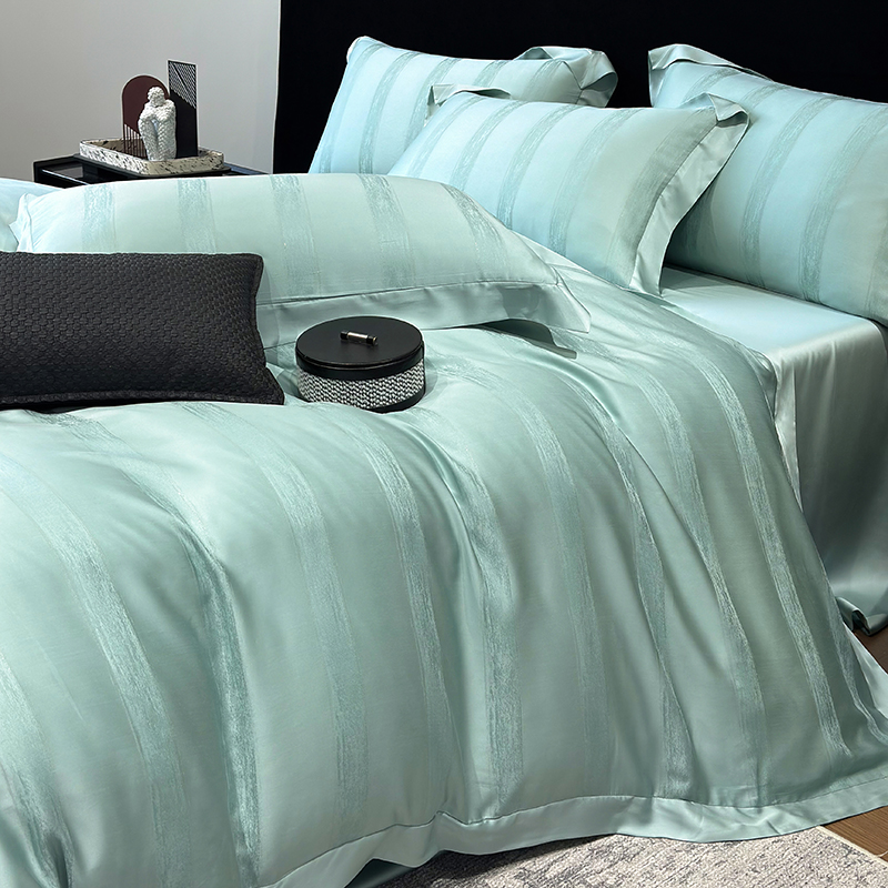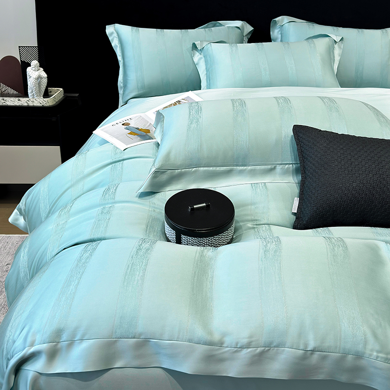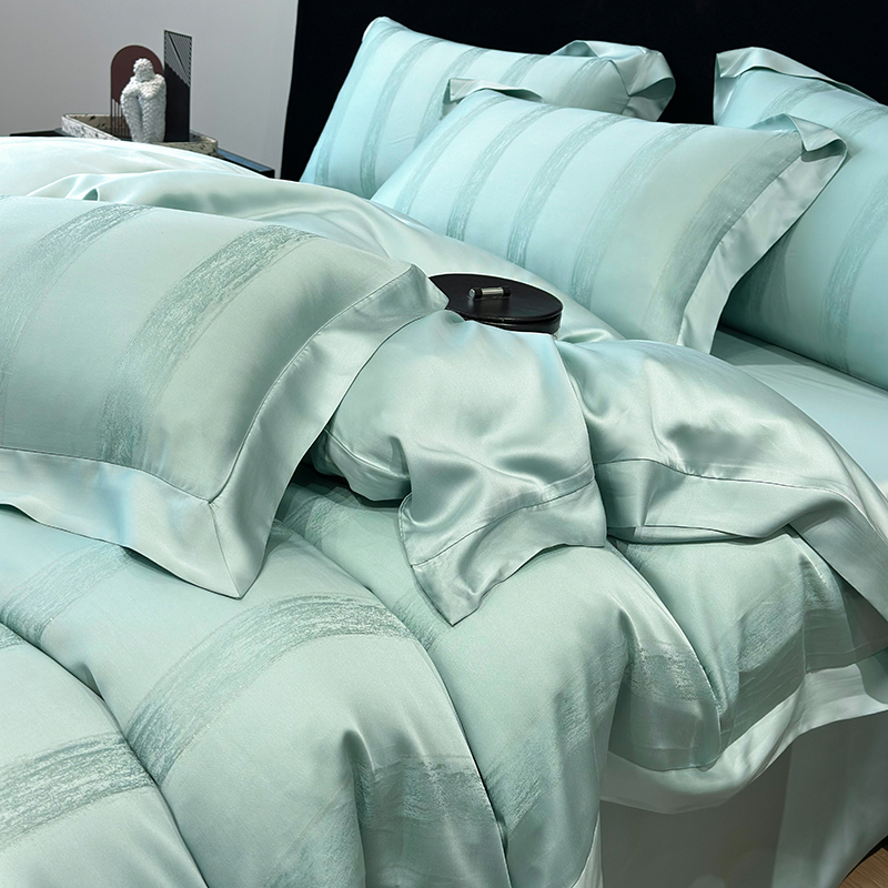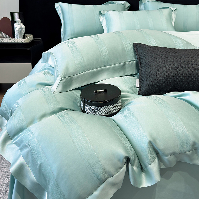 商品名称:若未家居 LOVEWE HOUSE 2025新款50S兰精天丝轻奢基底提花带银丝套件- 亦梵 亦梵-蓝色