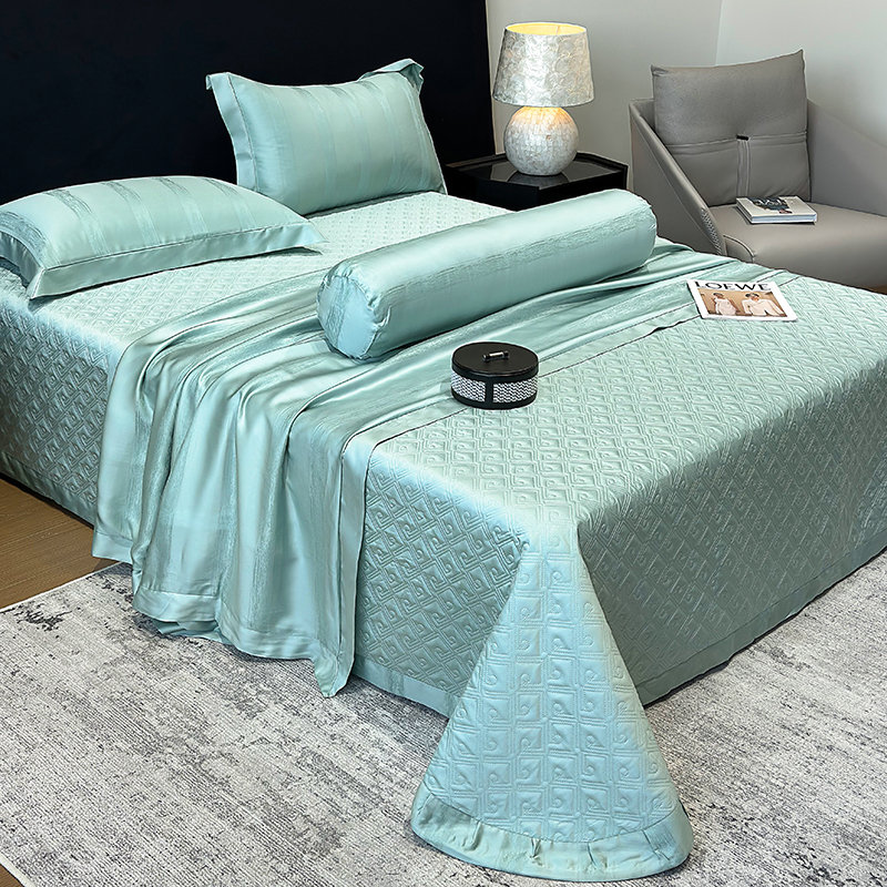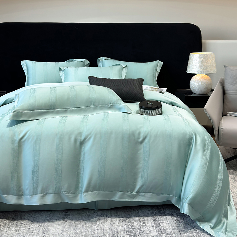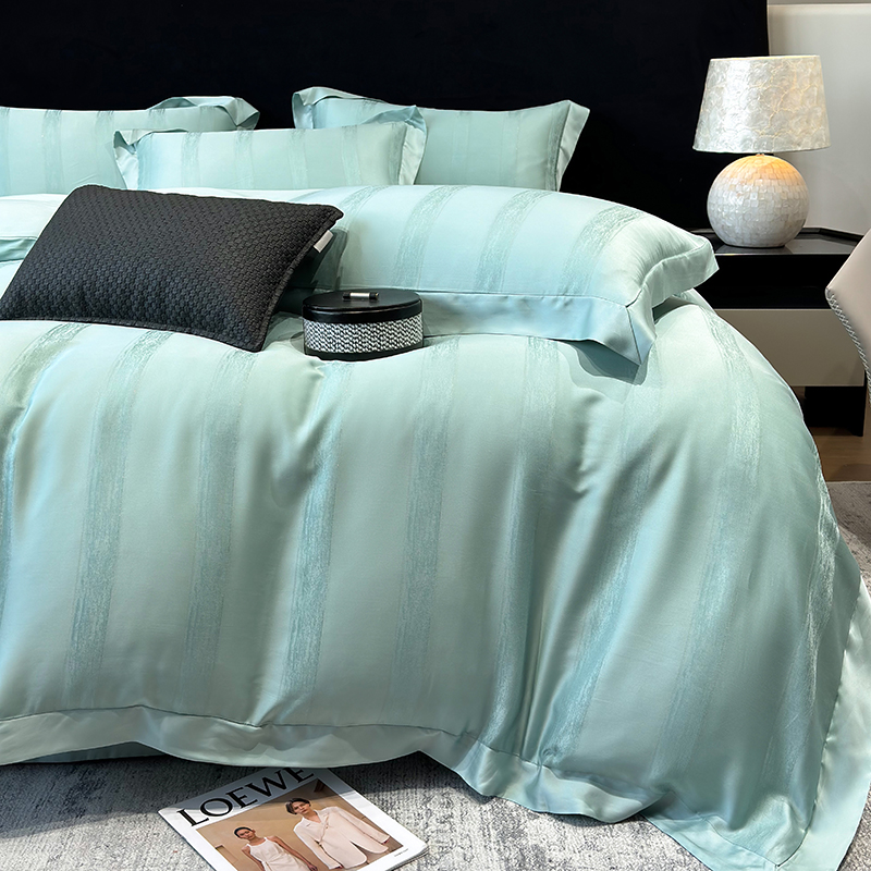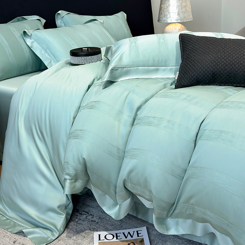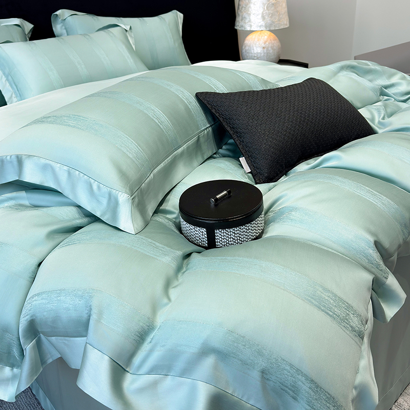 商品名称:若未家居 LOVEWE HOUSE 2025新款50S兰精天丝轻奢基底提花带银丝套件- 亦梵 亦梵-蓝色