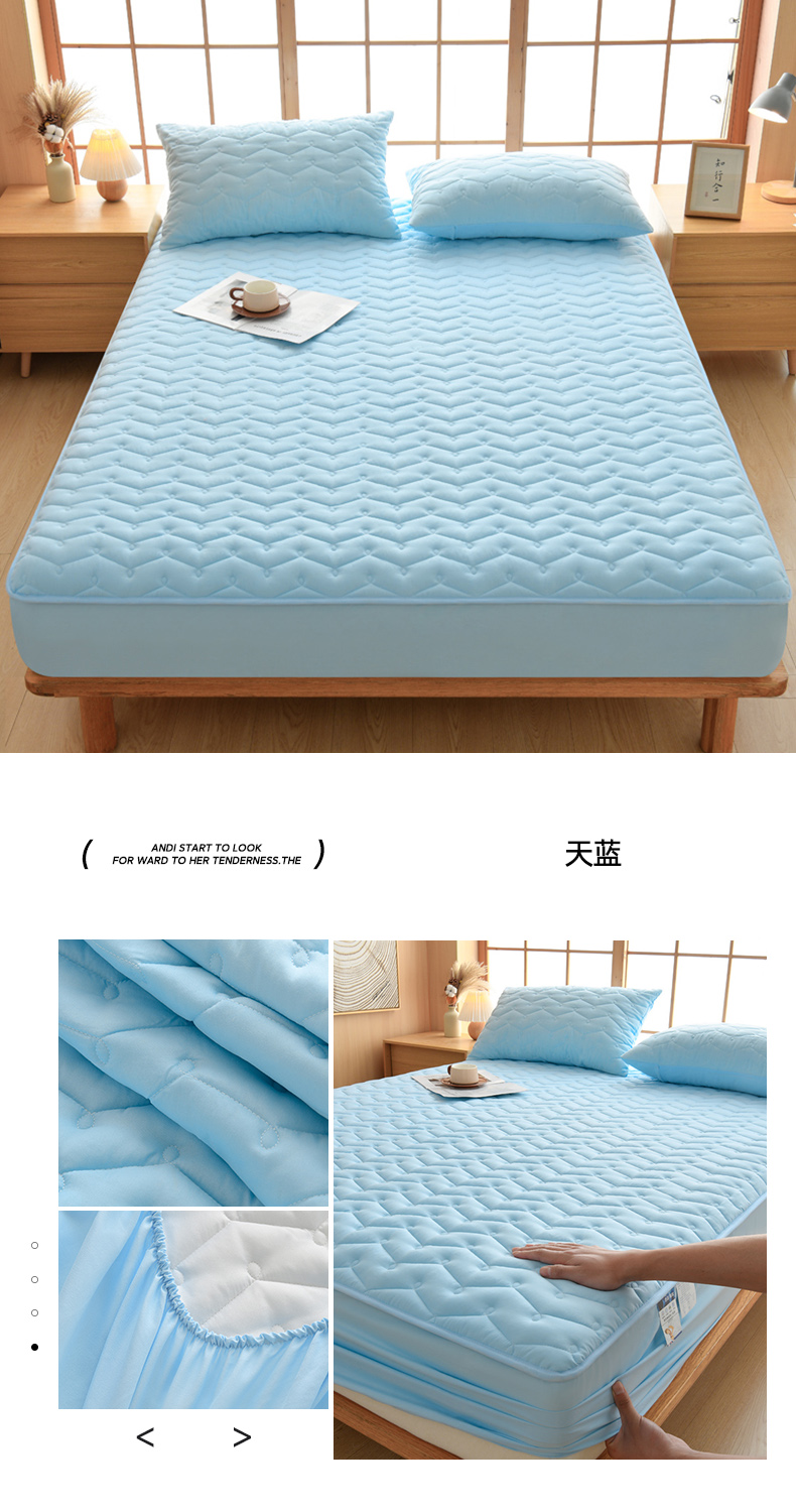 乐逸家纺 2025新款防水波浪夹棉床笠 防水天蓝