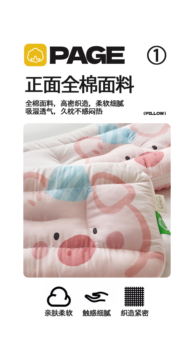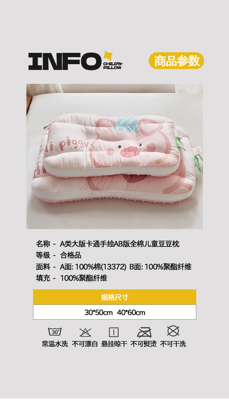 当前位置: 91家纺网 > 商品网购 > 婴童用品 > 婴童枕头/枕芯 > 2025新款A类大版卡通手绘AB版儿童豆豆枕枕芯系列 粉粉猪40*60cm/只