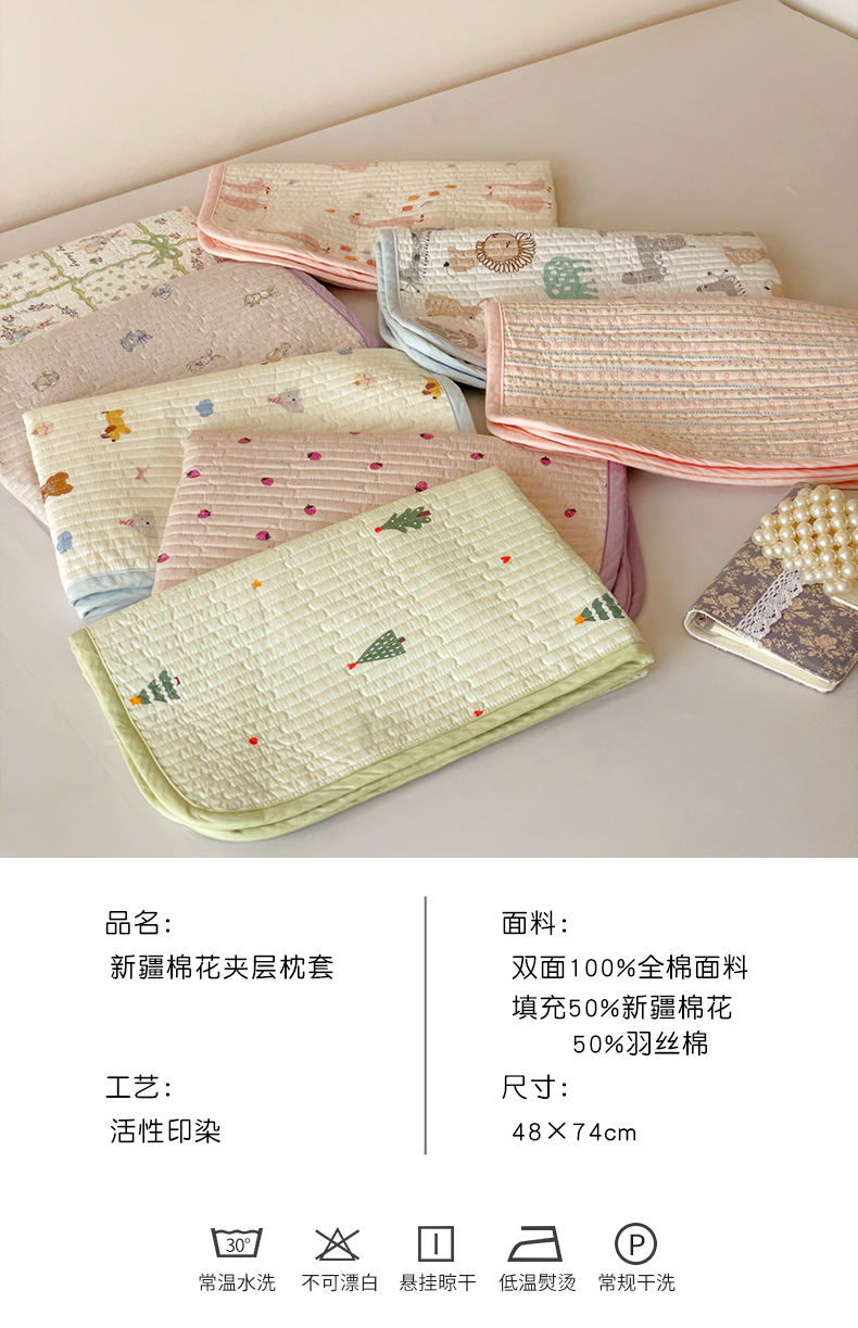 商品名称:漫时光 2025新款全棉纯棉新疆棉花夹层单枕套 动物世界