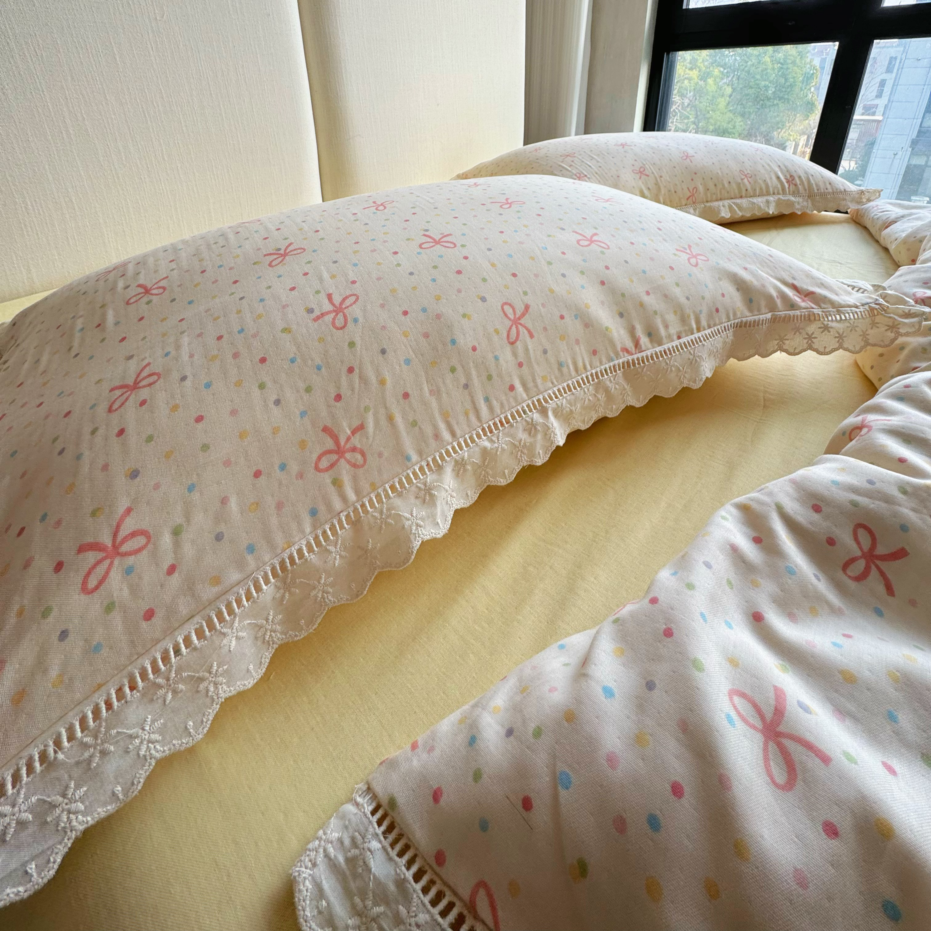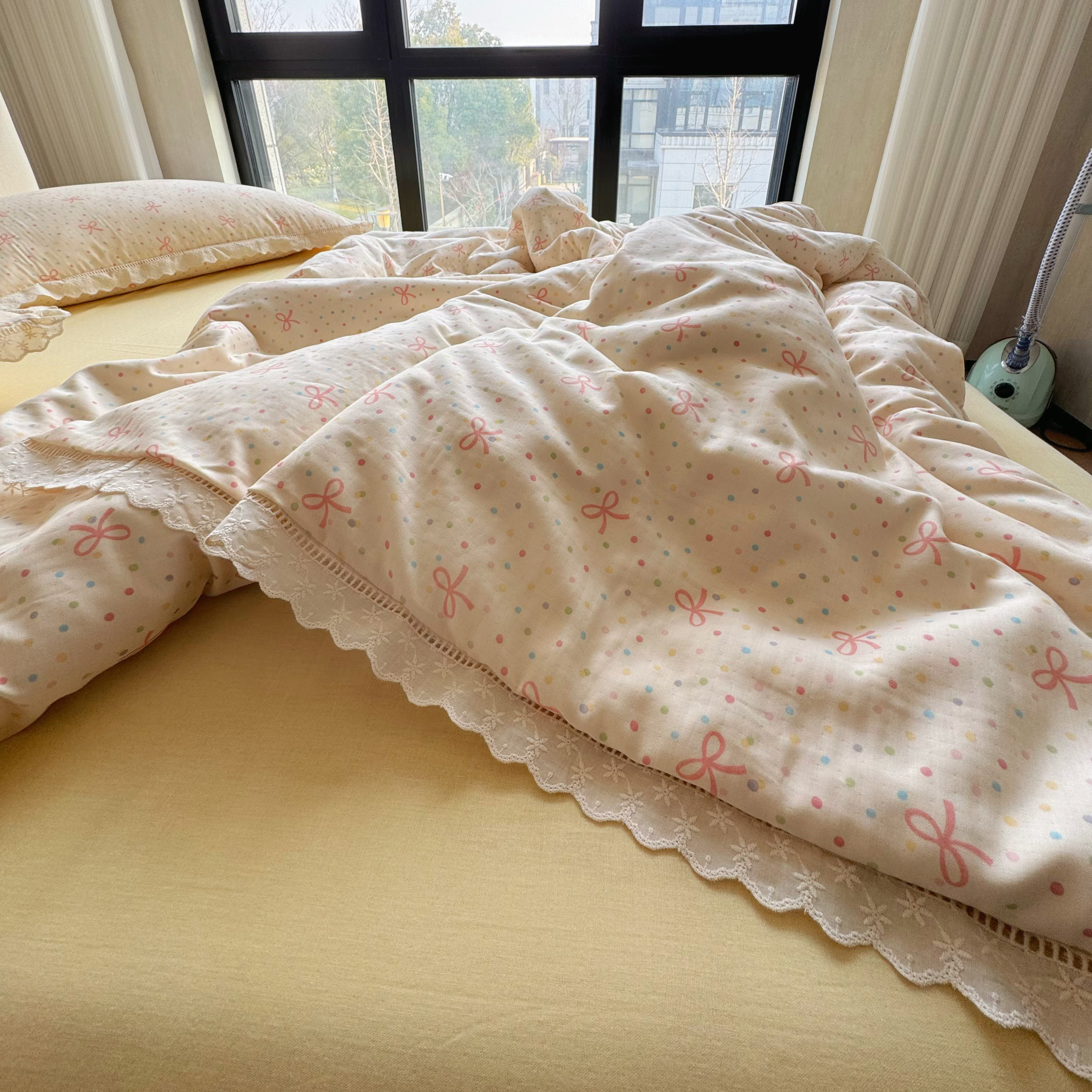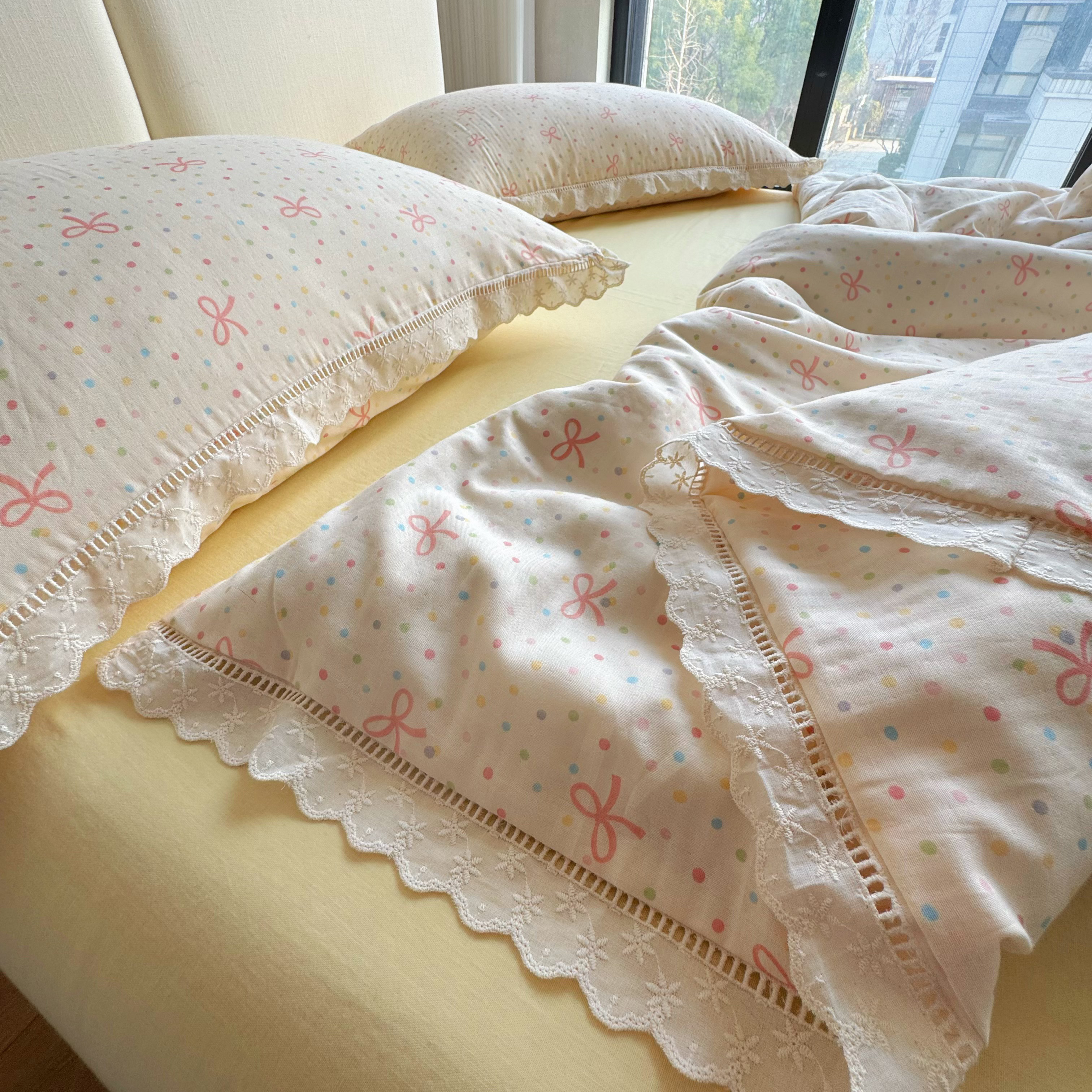 8+8 (花型持续更新中)2025新款全棉双层纱镂空花边/皱皱花边四件套 情人节