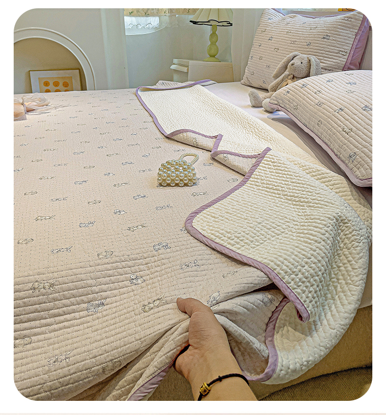 当前位置: 91家纺网 > 商品网购 > 床上用品 > 床盖 > 漫时光 2025新款全棉纯棉新疆棉花夹层单床盖 芭比兔
