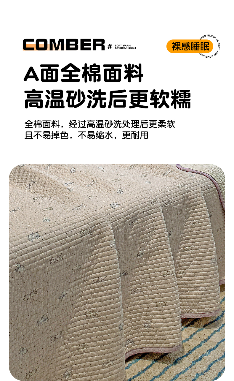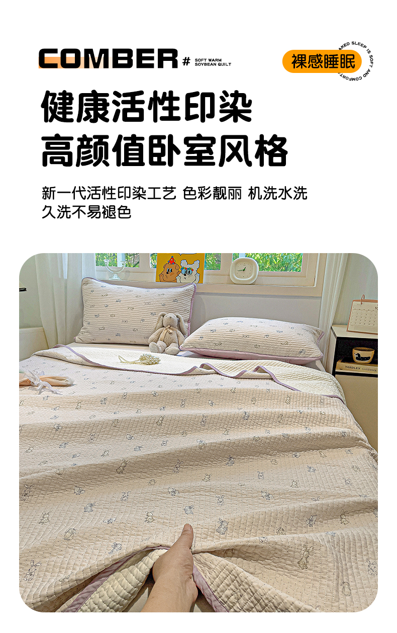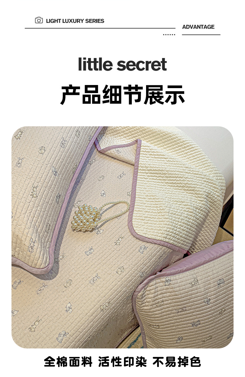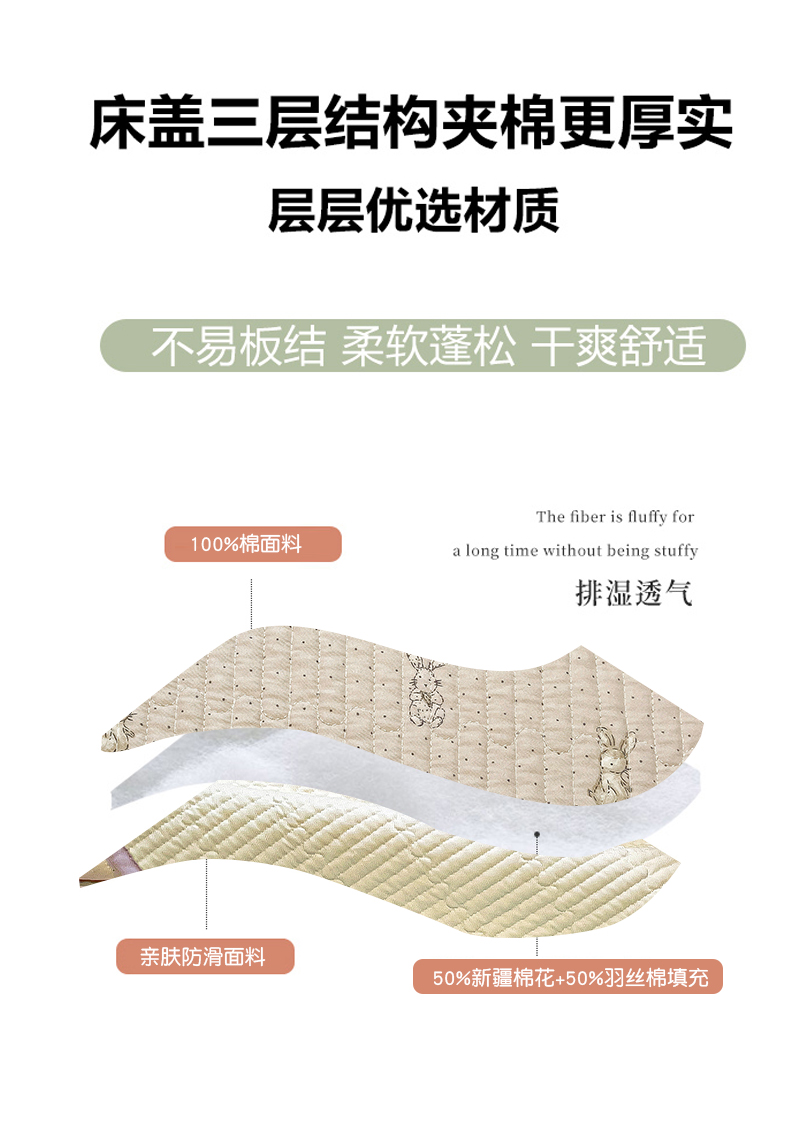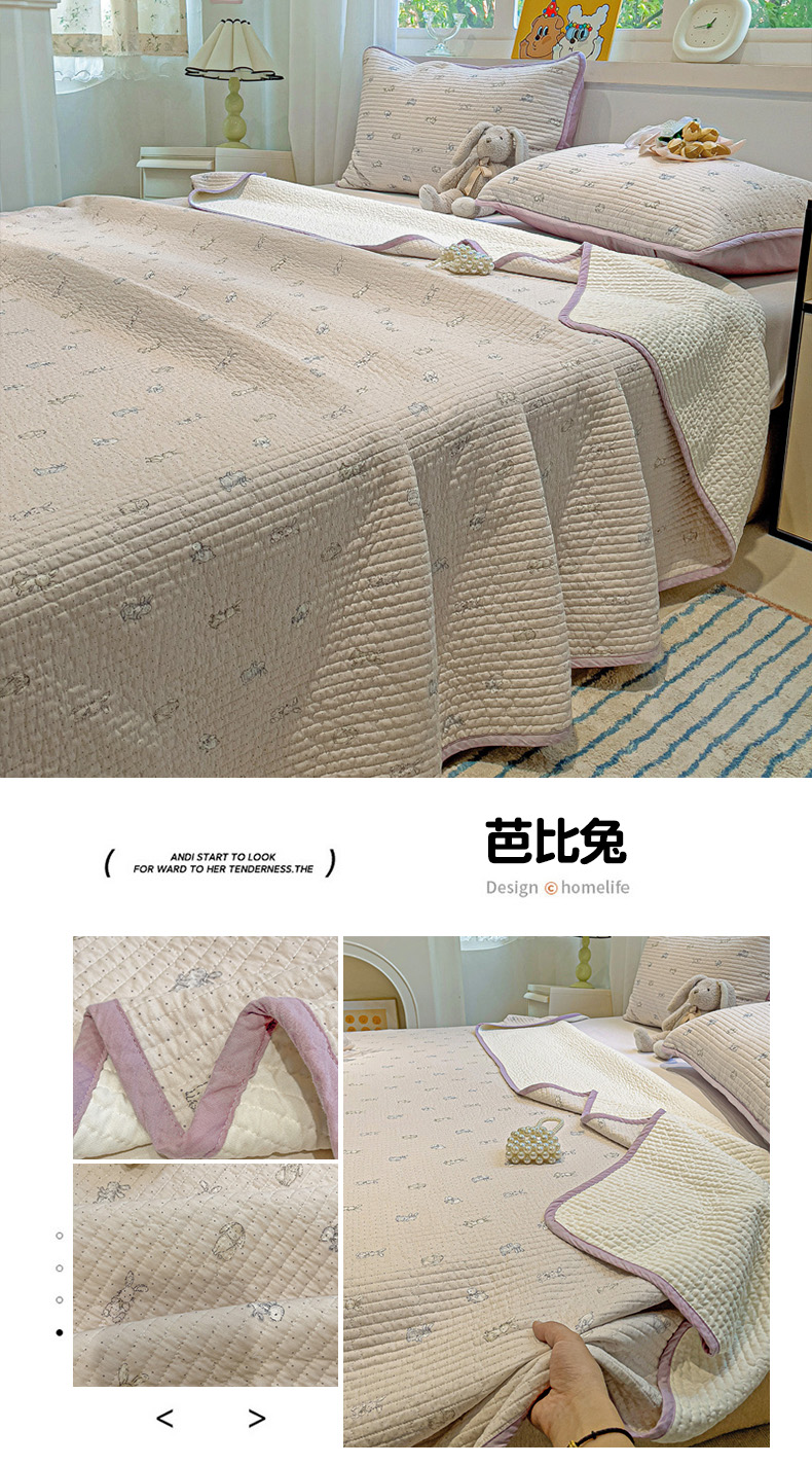 • 91家纺网 家纺一手货源 找家纺 漫时光 2025新款全棉纯棉新疆棉花夹层单床盖 芭比兔