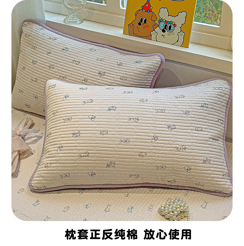 (总)漫时光 2025新款正面纯棉反面宝宝绒印花夹棉砂洗床盖三件套,班尼熊,风铃小兔,花间小兔,花园兔,开心屋,蕾丝小狗,猫咪派对,曲奇小狗,条纹熊,汪汪曲,小狗日记,小伙伴,小熊猫