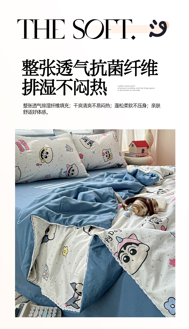 妖妖家纺 2025新款超柔双层纱糯糯针织棉夏凉被四件套 音乐小新