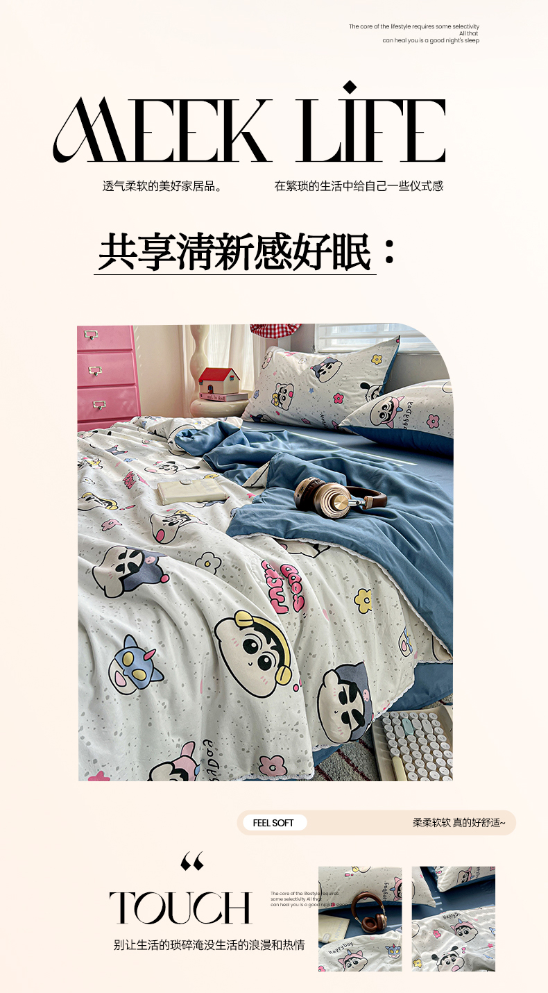 商品名称:妖妖家纺 2025新款超柔双层纱糯糯针织棉夏凉被四件套 音乐小新