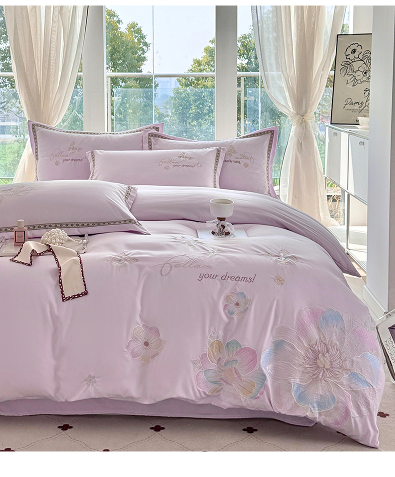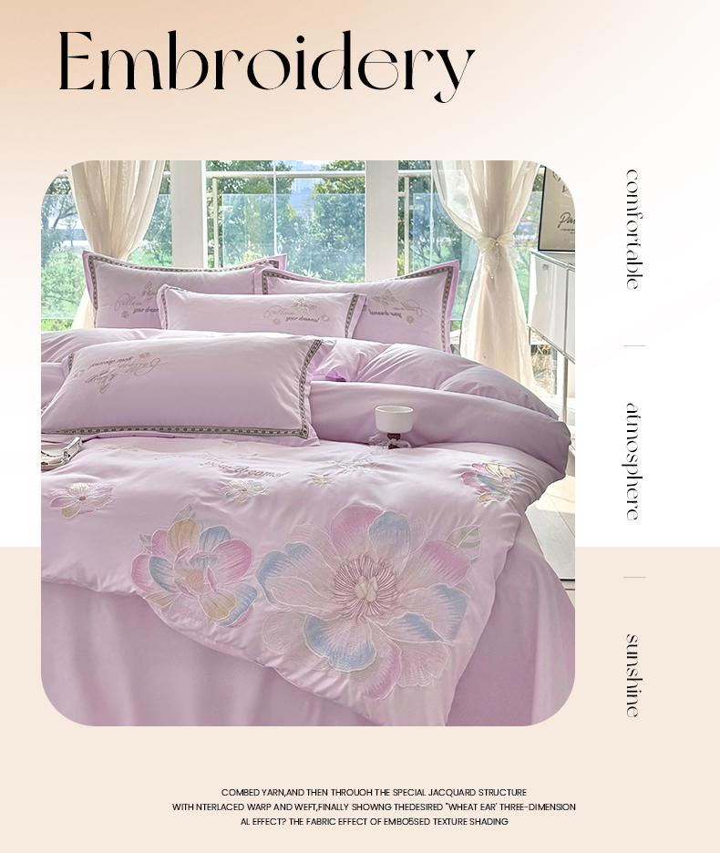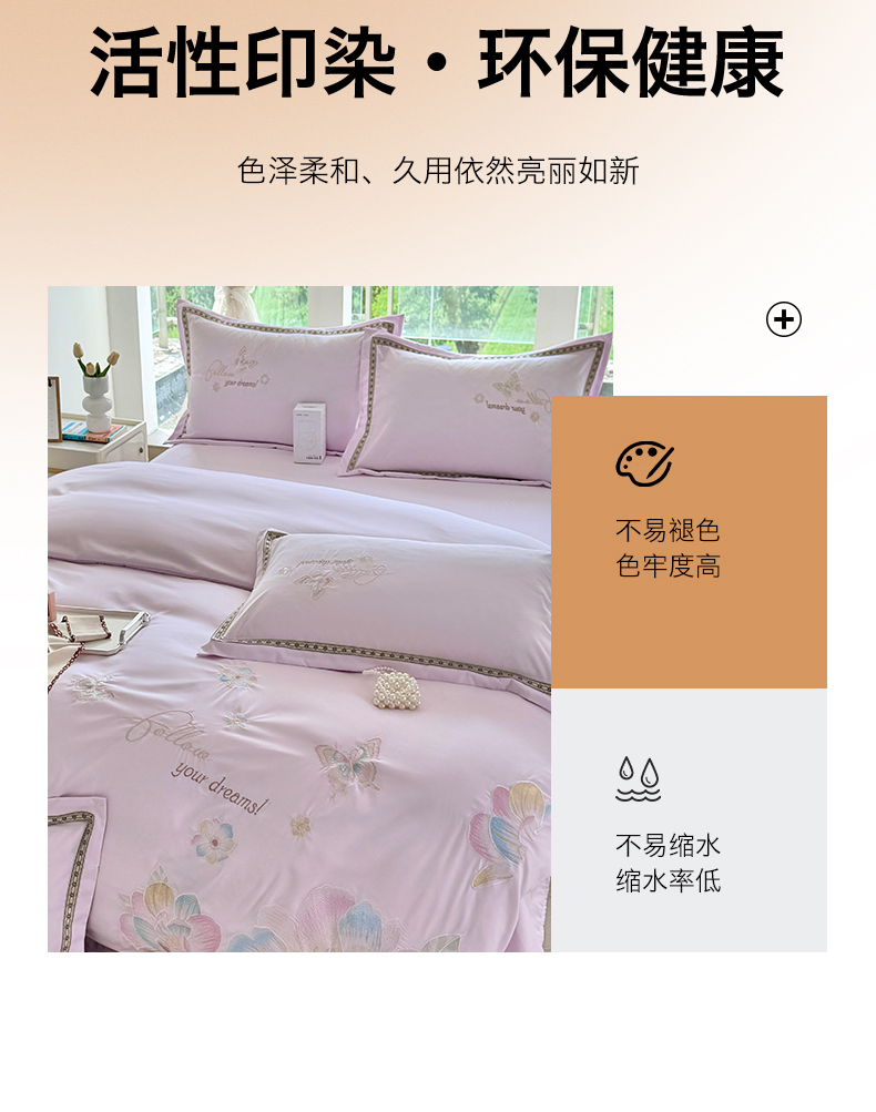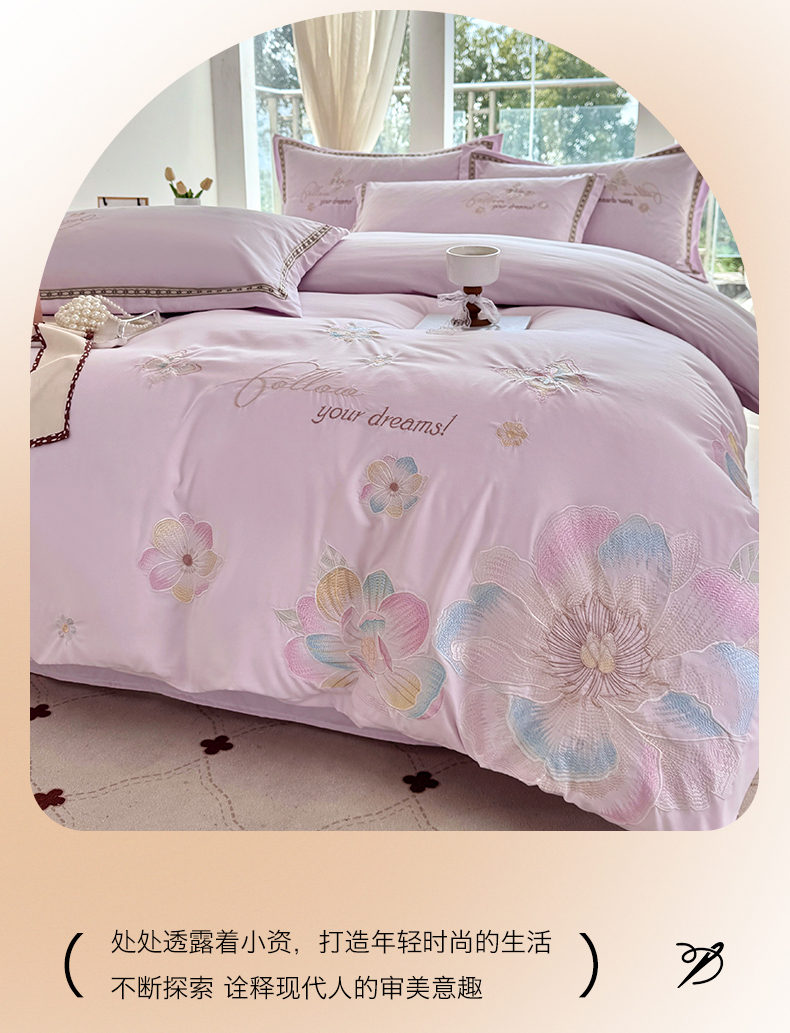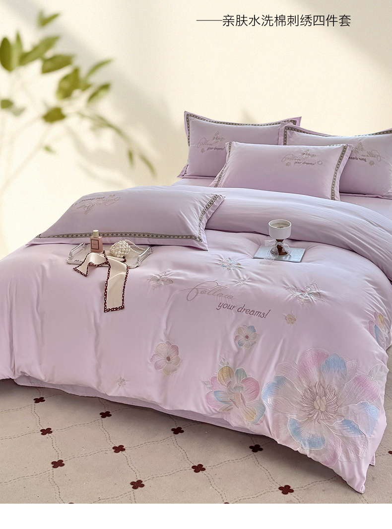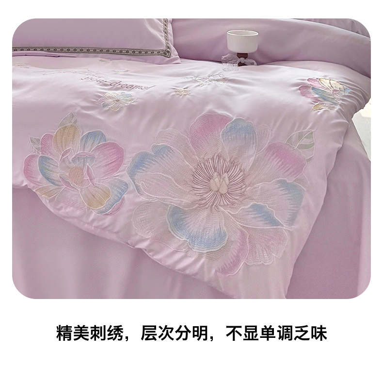 当前位置: 91家纺网 > 商品网购 > 床品套件 > 四件套 > 水洗棉四件套 > 佳宇轩 2025爆款水洗棉五彩刺绣四件套简约轻奢织带绣花床单床笠被罩4件套-牡丹 牡丹-粉紫