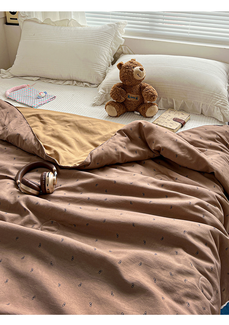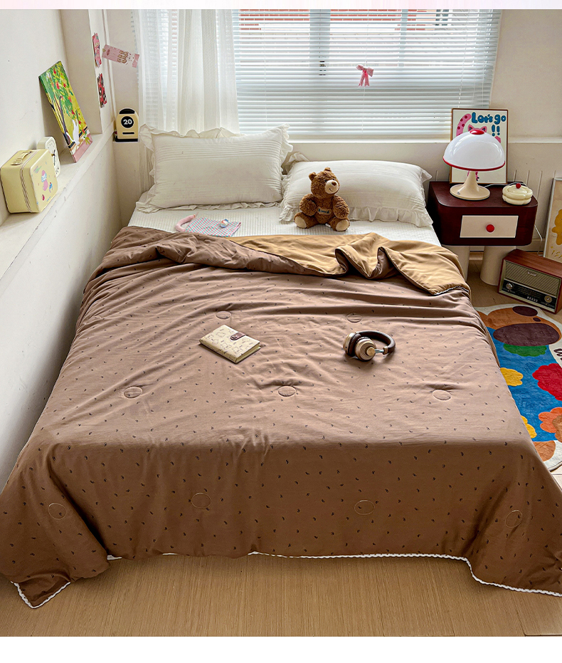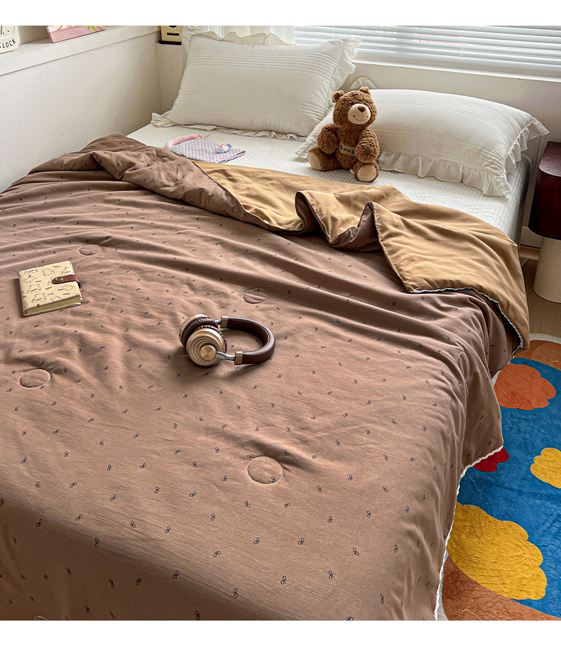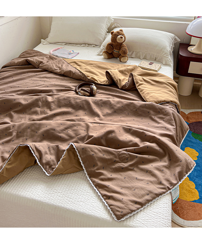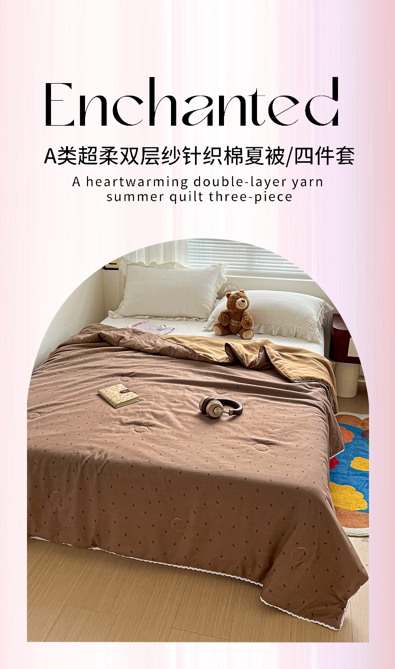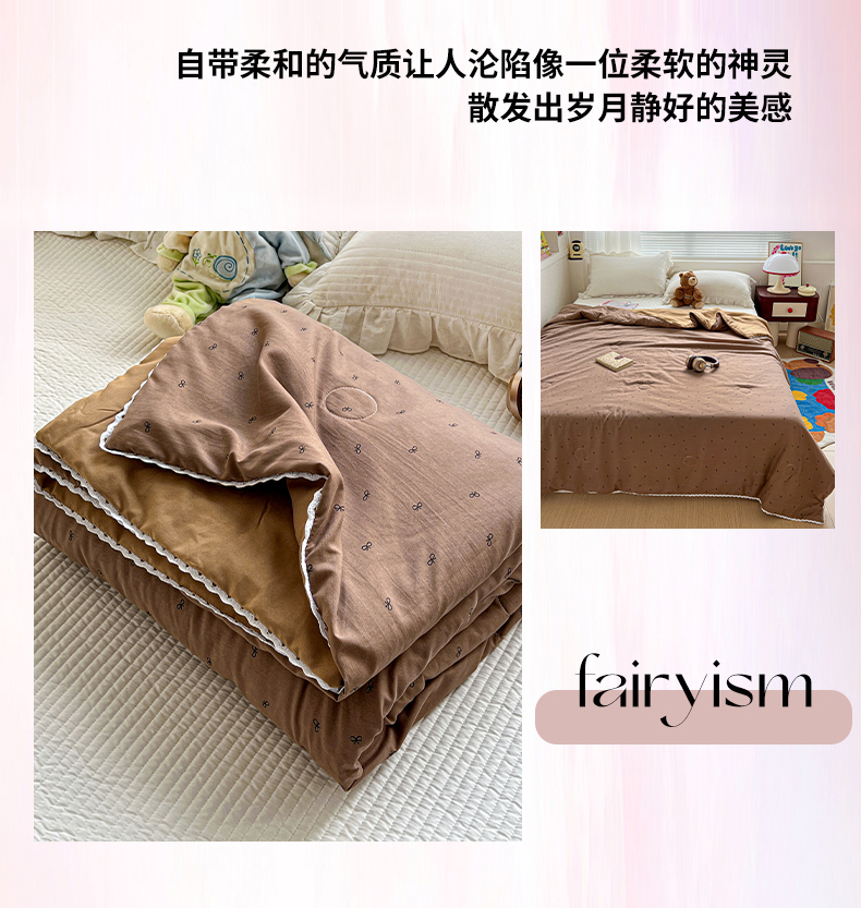 商品名称:妖妖家纺 2025新款超柔双层纱糯糯针织棉夏凉被 小蝴蝶-咖色