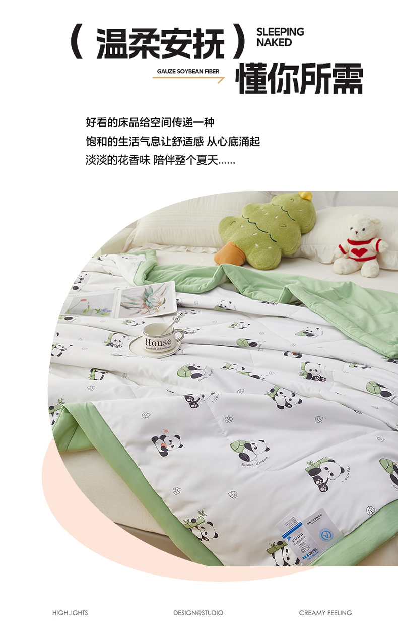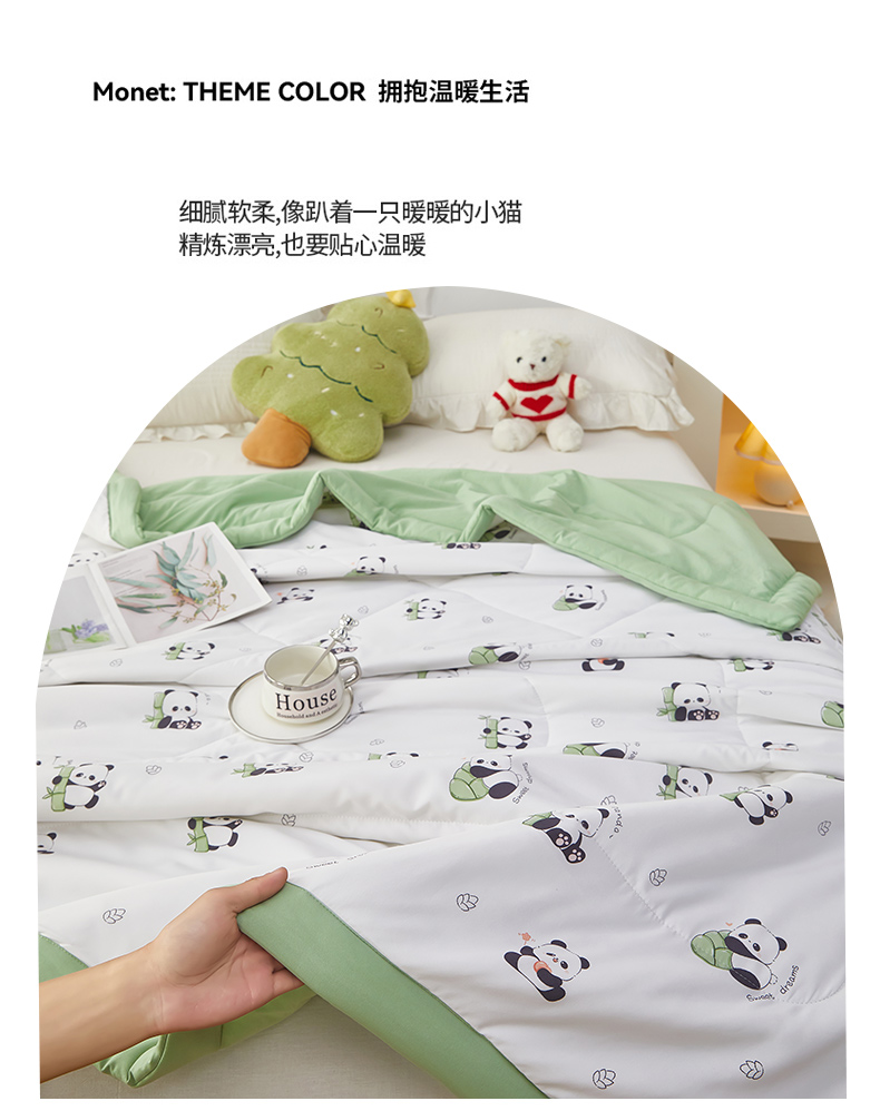 (总)中国龙家纺 2025新款双面可用兔毛绒豆豆被被子被芯,熊猫点点-绿,熊猫点点-咖