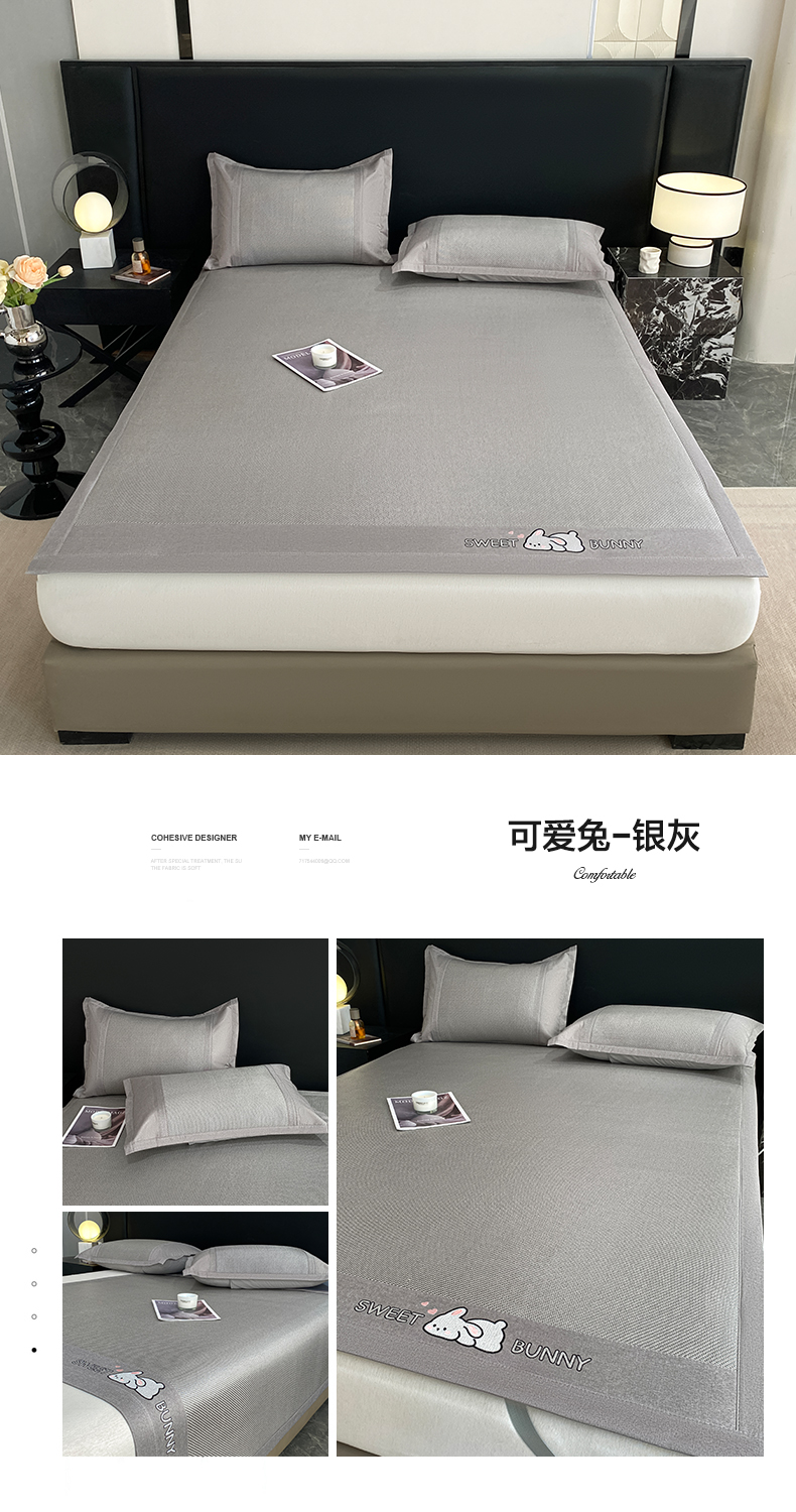 商品名称:莱米家纺 2025新款加厚凉感绣花冰藤席 可爱兔—银灰-凉席
