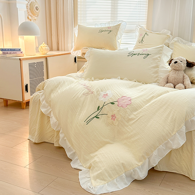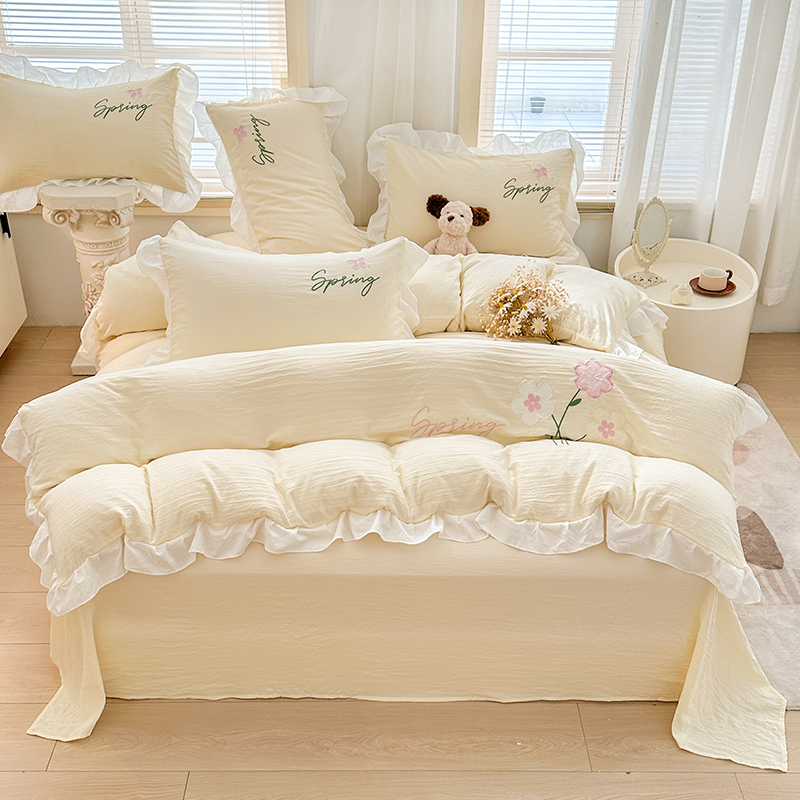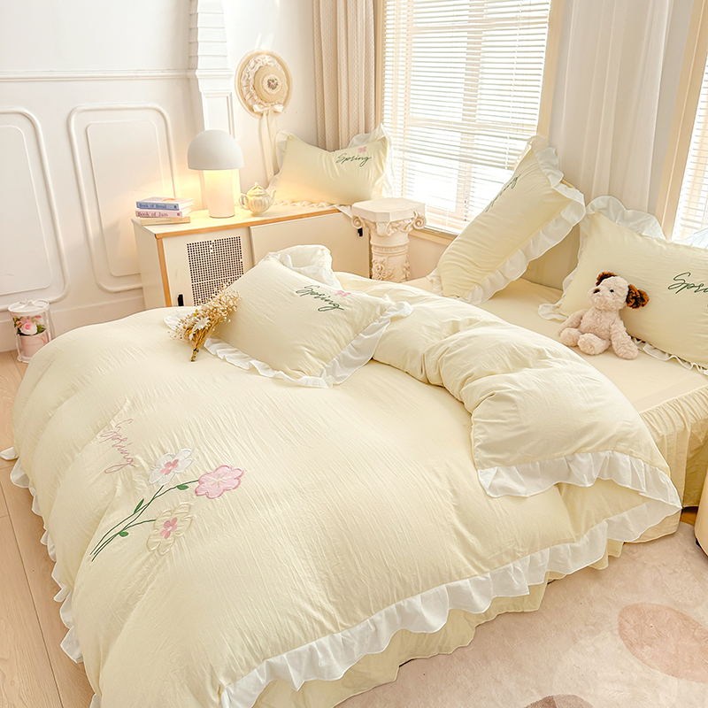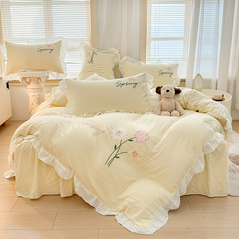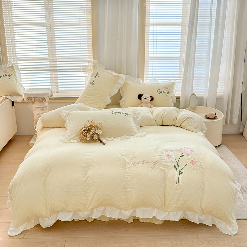 当前位置: 91家纺网 > 商品网购 > 床品套件 > 四件套 > 其它四件套 > 家贝爱 2025新款花边刺绣四件套繁朵系列 繁朵-黄