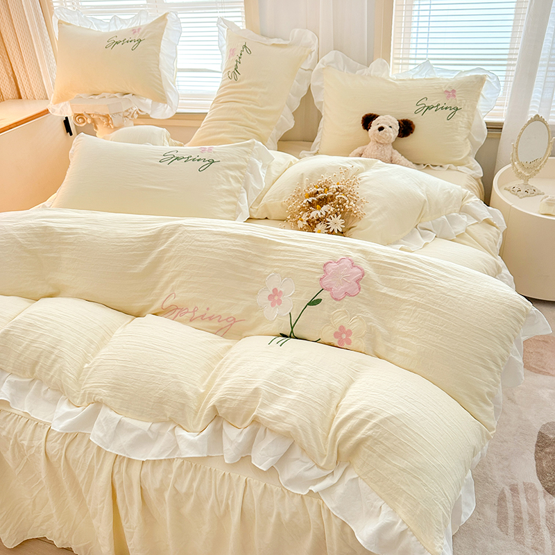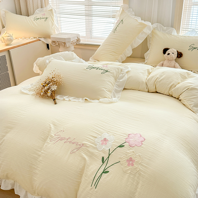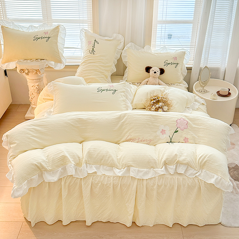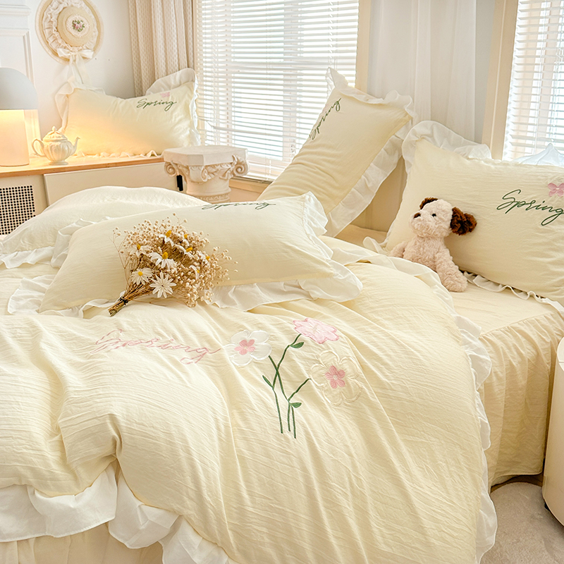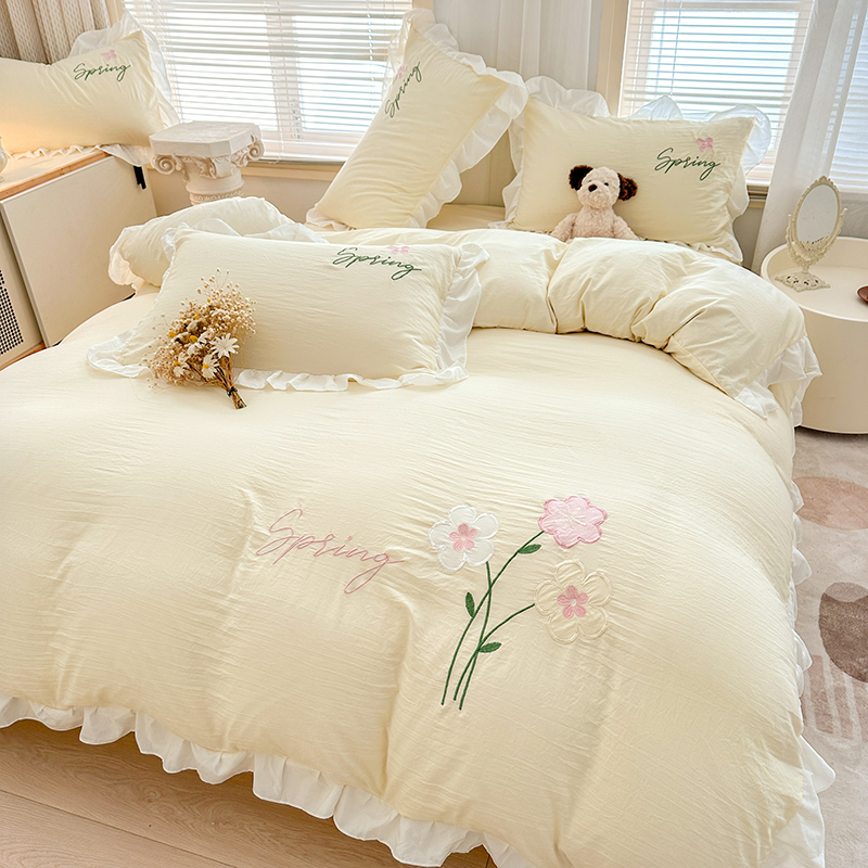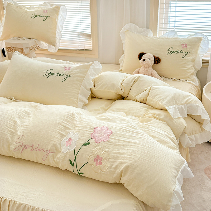 当前位置: 91家纺网 > 商品网购 > 床品套件 > 四件套 > 其它四件套 > 家贝爱 2025新款花边刺绣四件套繁朵系列 繁朵-黄