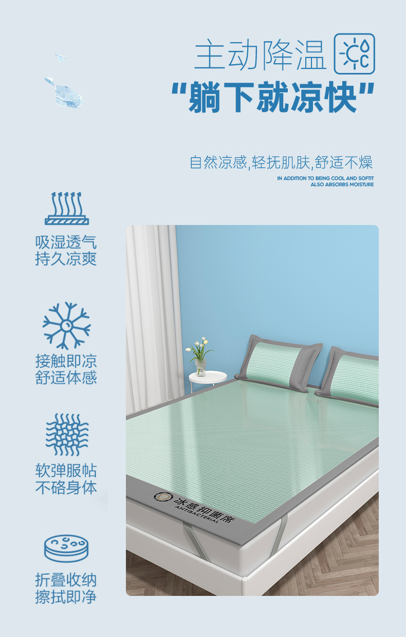 当前位置: 91家纺网 > 商品网购 > 床上用品 > 凉席 > 冰丝席 > 绒艺席业 2025新款A类抗菌冰丝凉席系列-冰感抑菌席 绿色