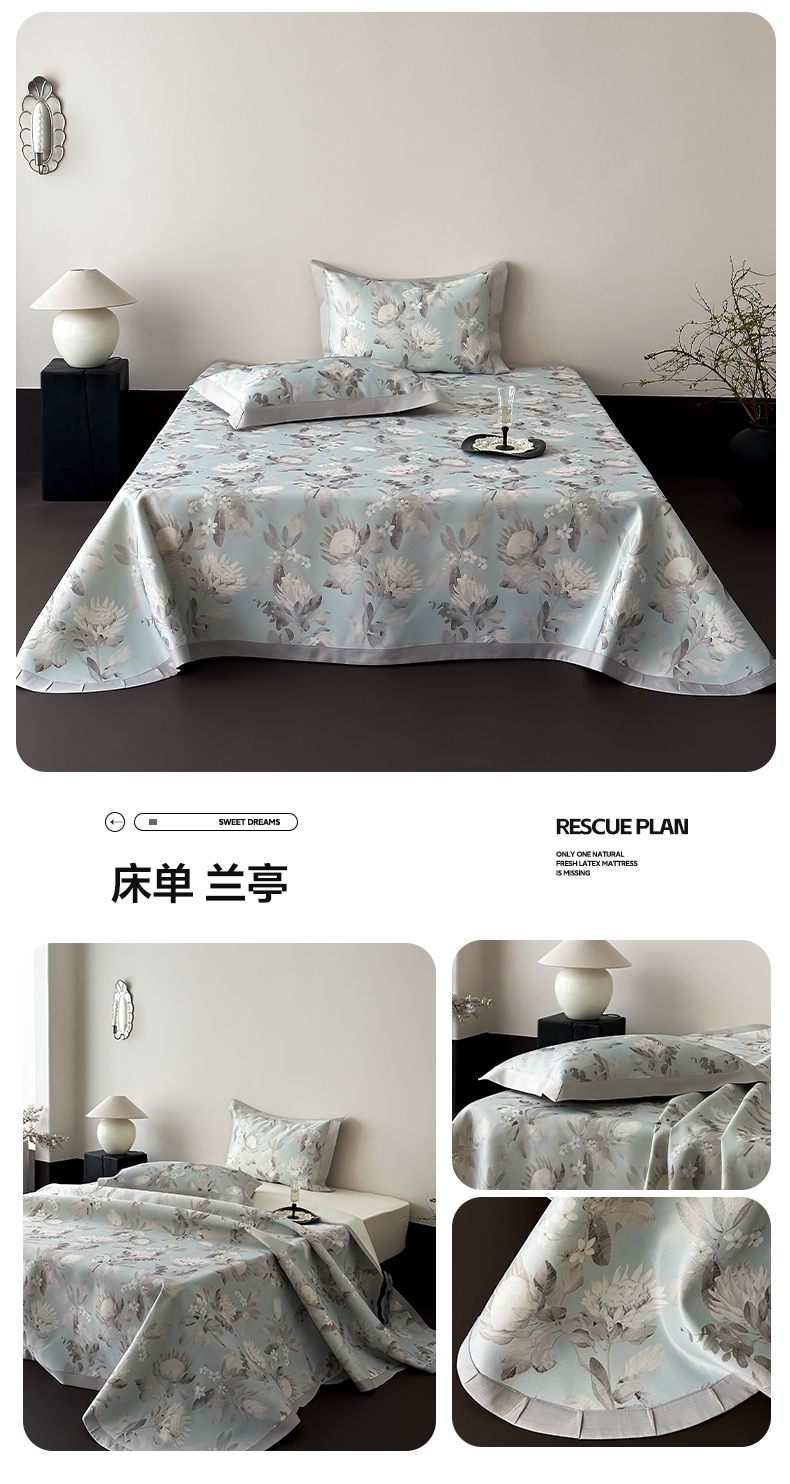 三味舒屋 2025新款雅奢系列数码印花冰丝床单凉席三件套 床单 兰亭