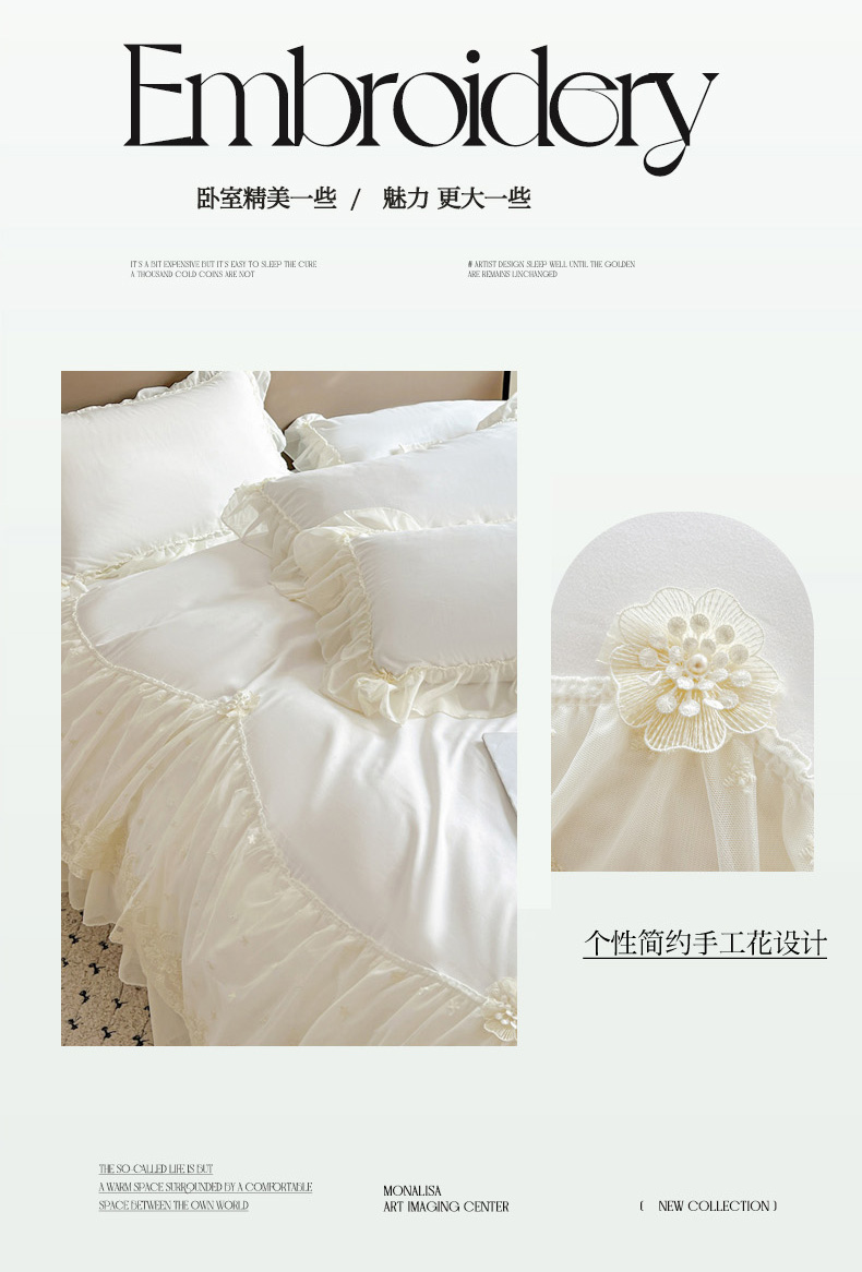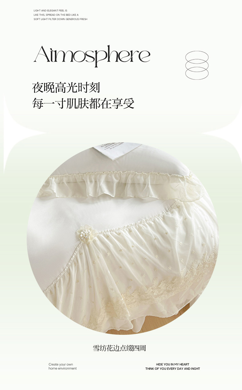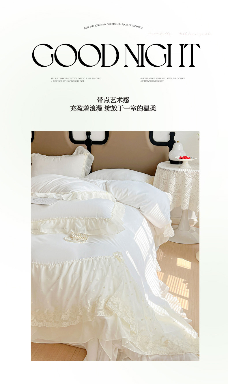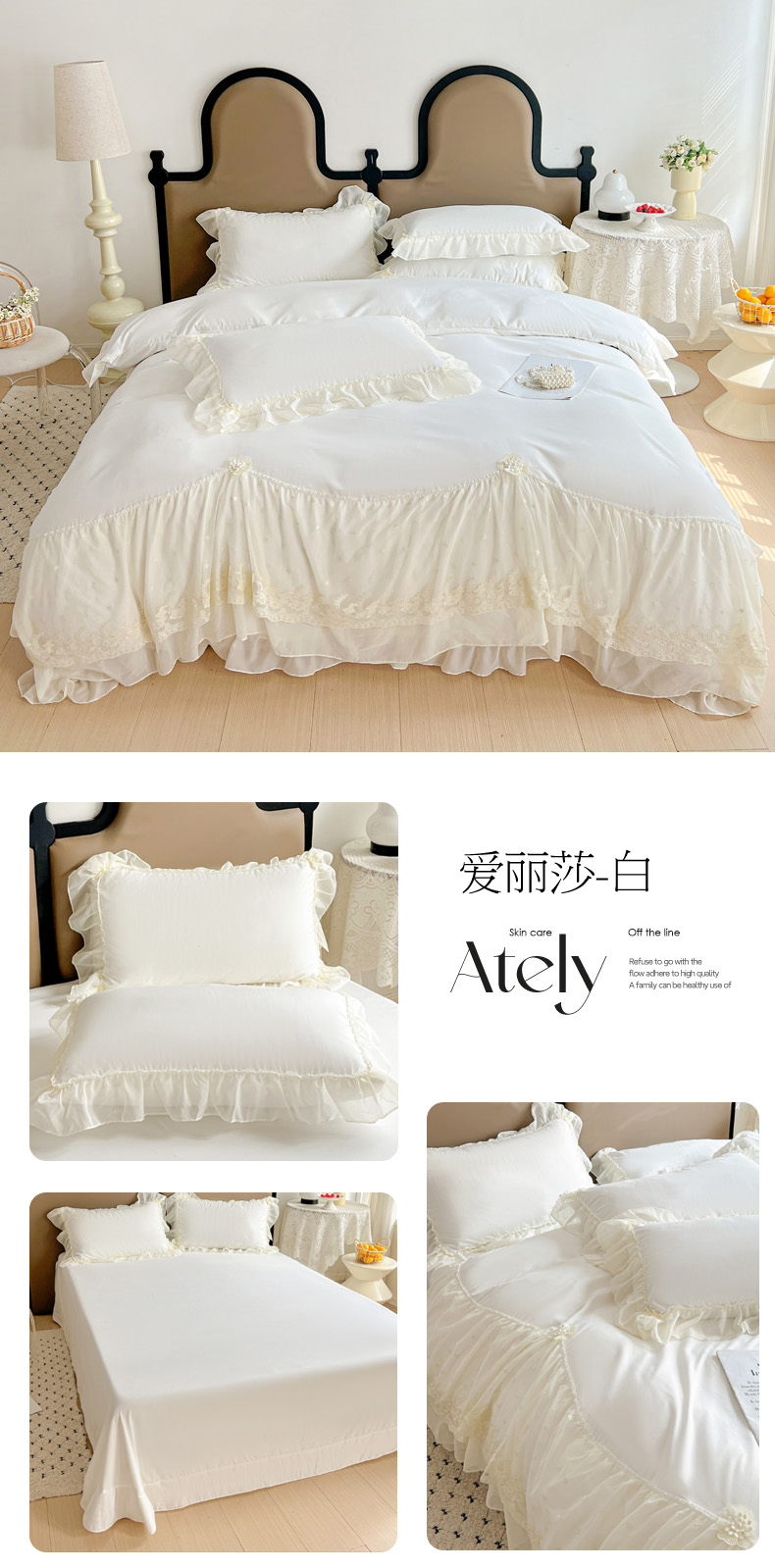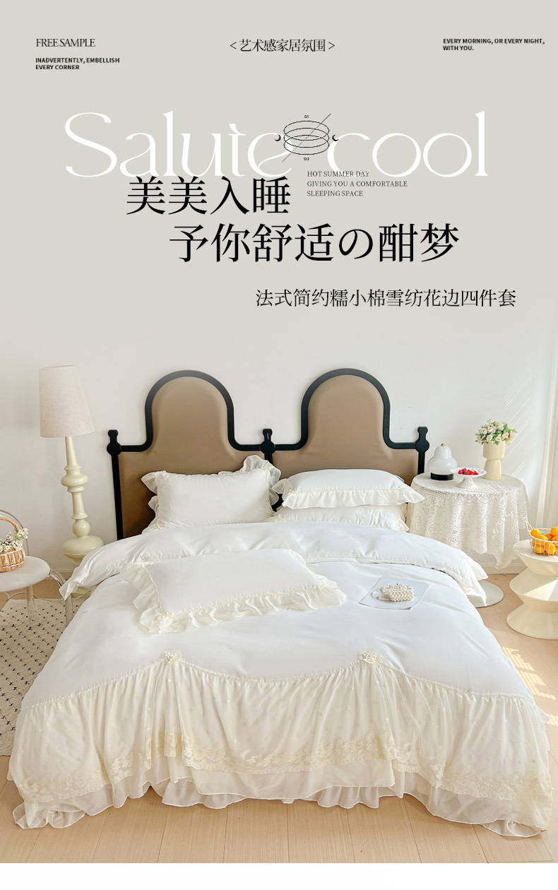 商品名称:艺玲家纺 2025新款糯小棉爱丽莎雪纺花边四件套 爱丽莎-白