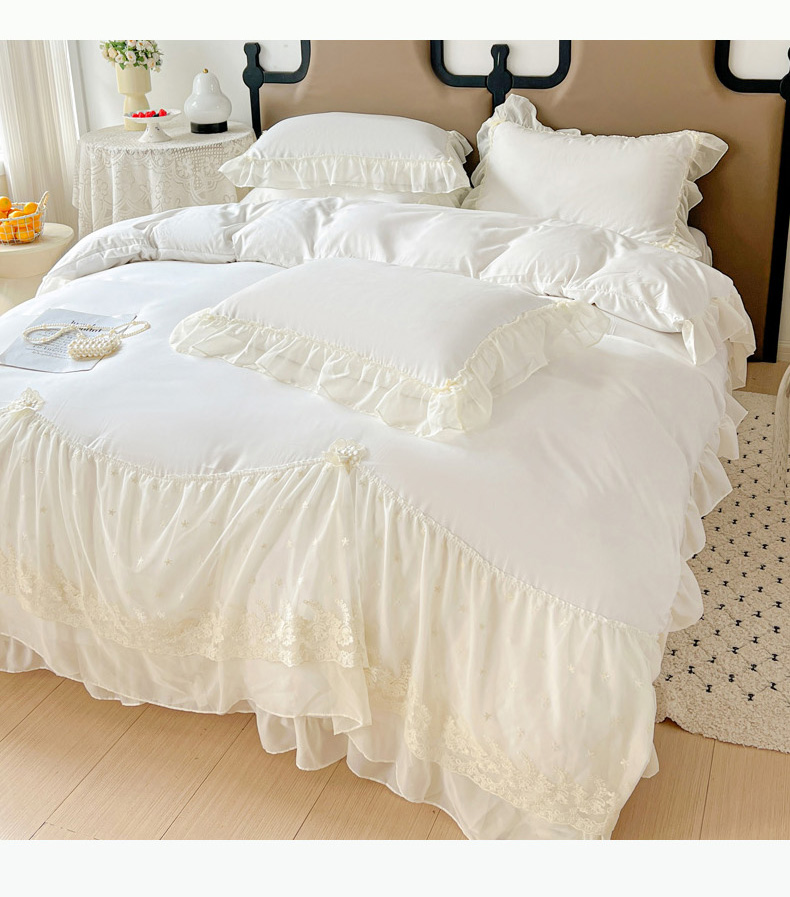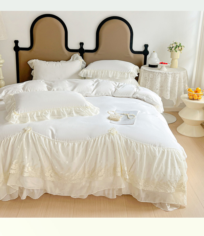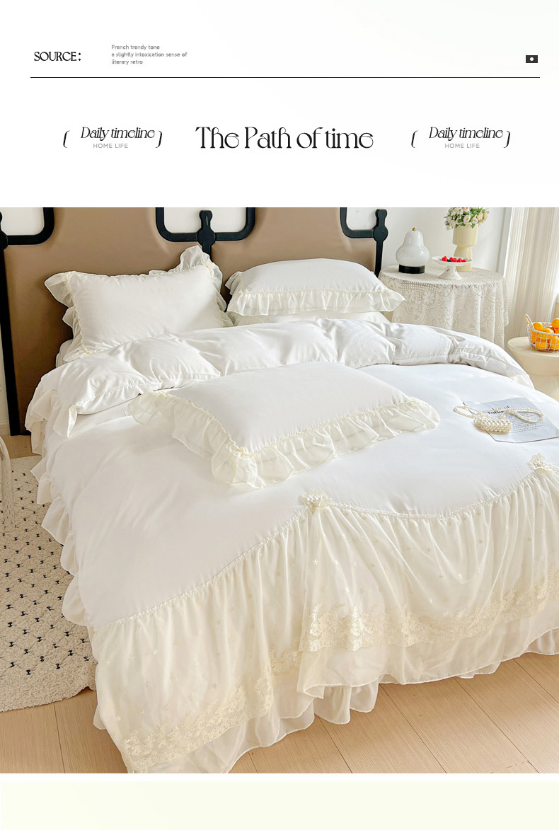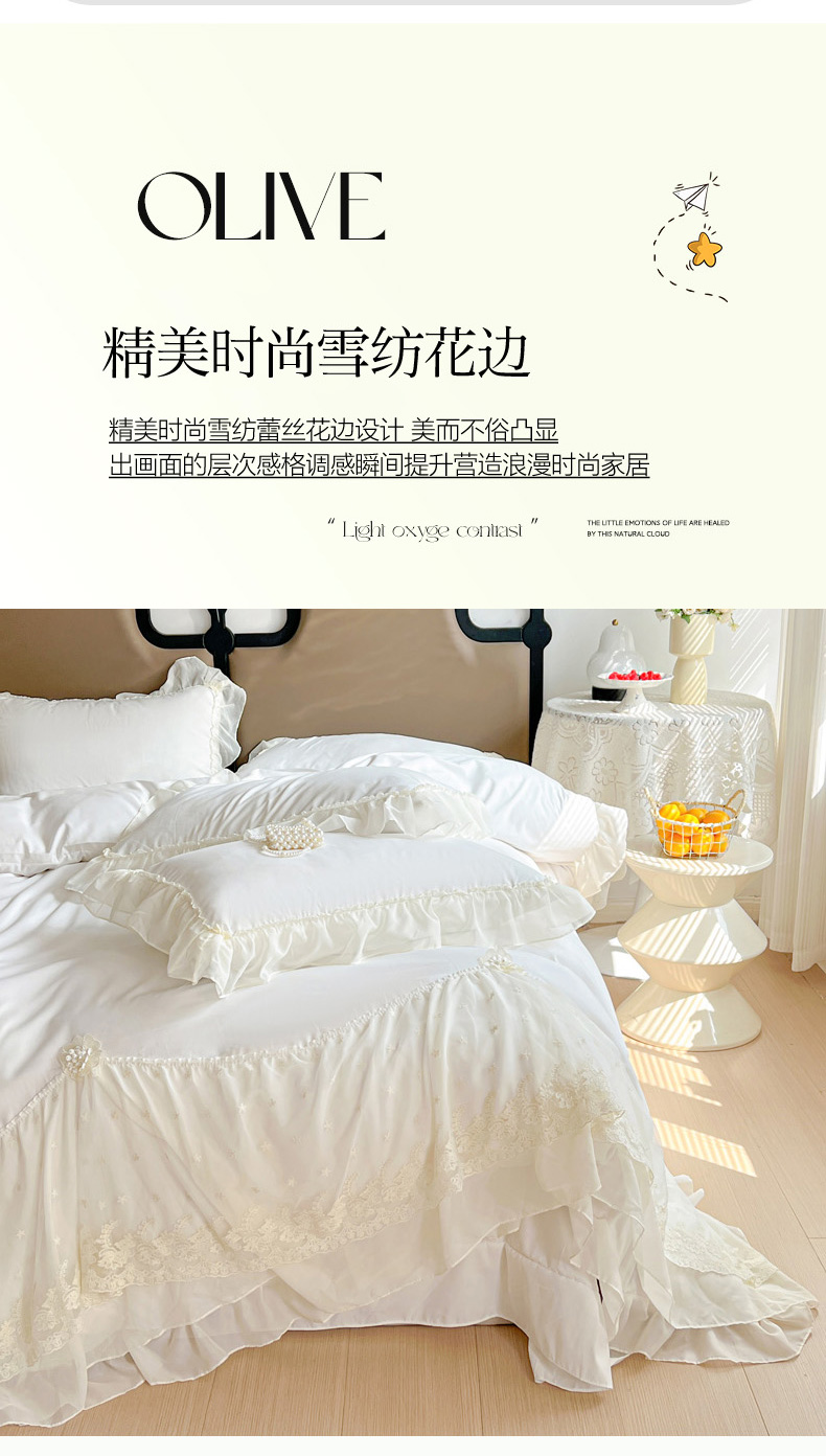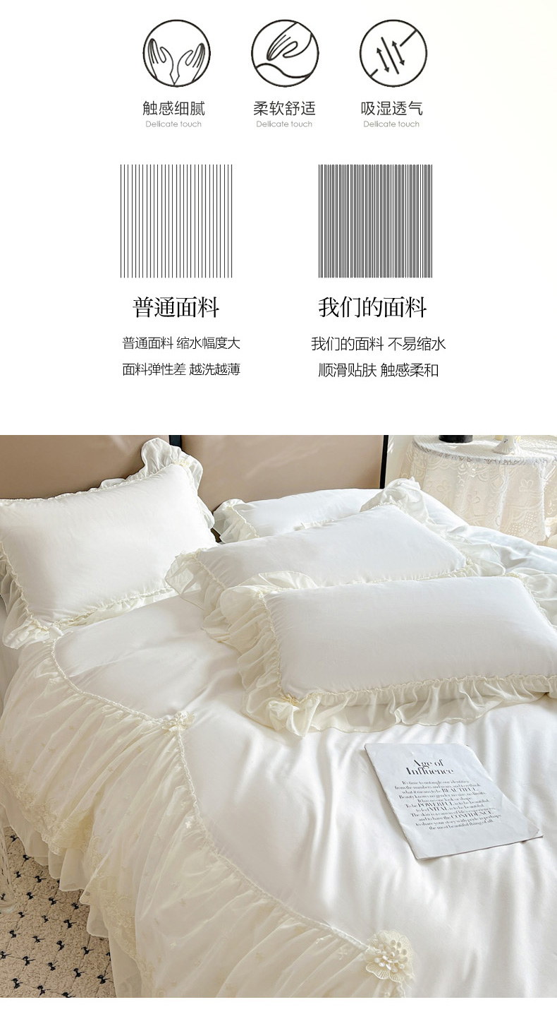 商品名称:艺玲家纺 2025新款糯小棉爱丽莎雪纺花边四件套 爱丽莎-白