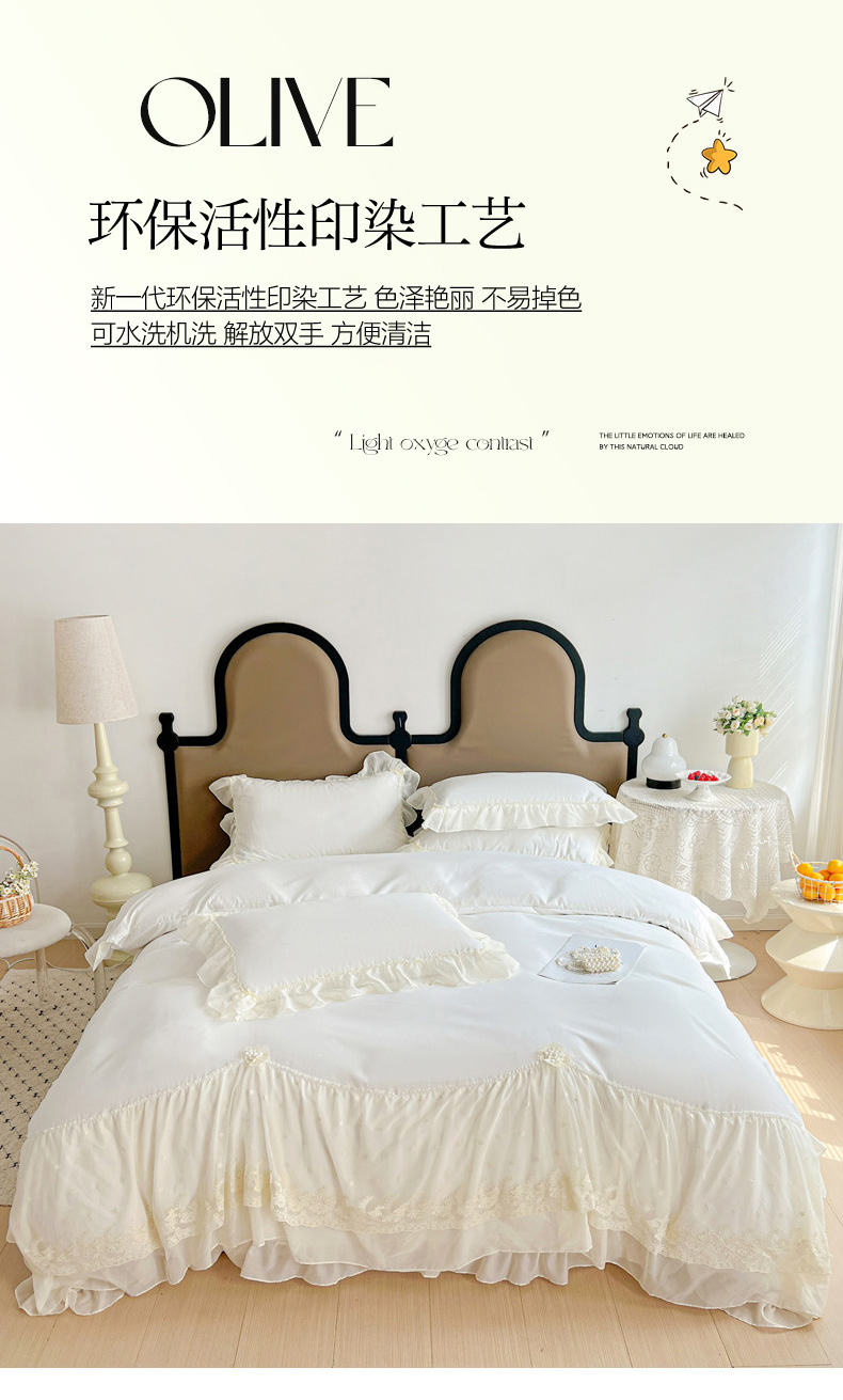 (总)艺玲家纺 2025新款糯小棉爱丽莎雪纺花边四件套,爱丽莎-白,爱丽莎-粉,爱丽莎-黄,爱丽莎-蓝,爱丽莎-绿,爱丽莎-紫