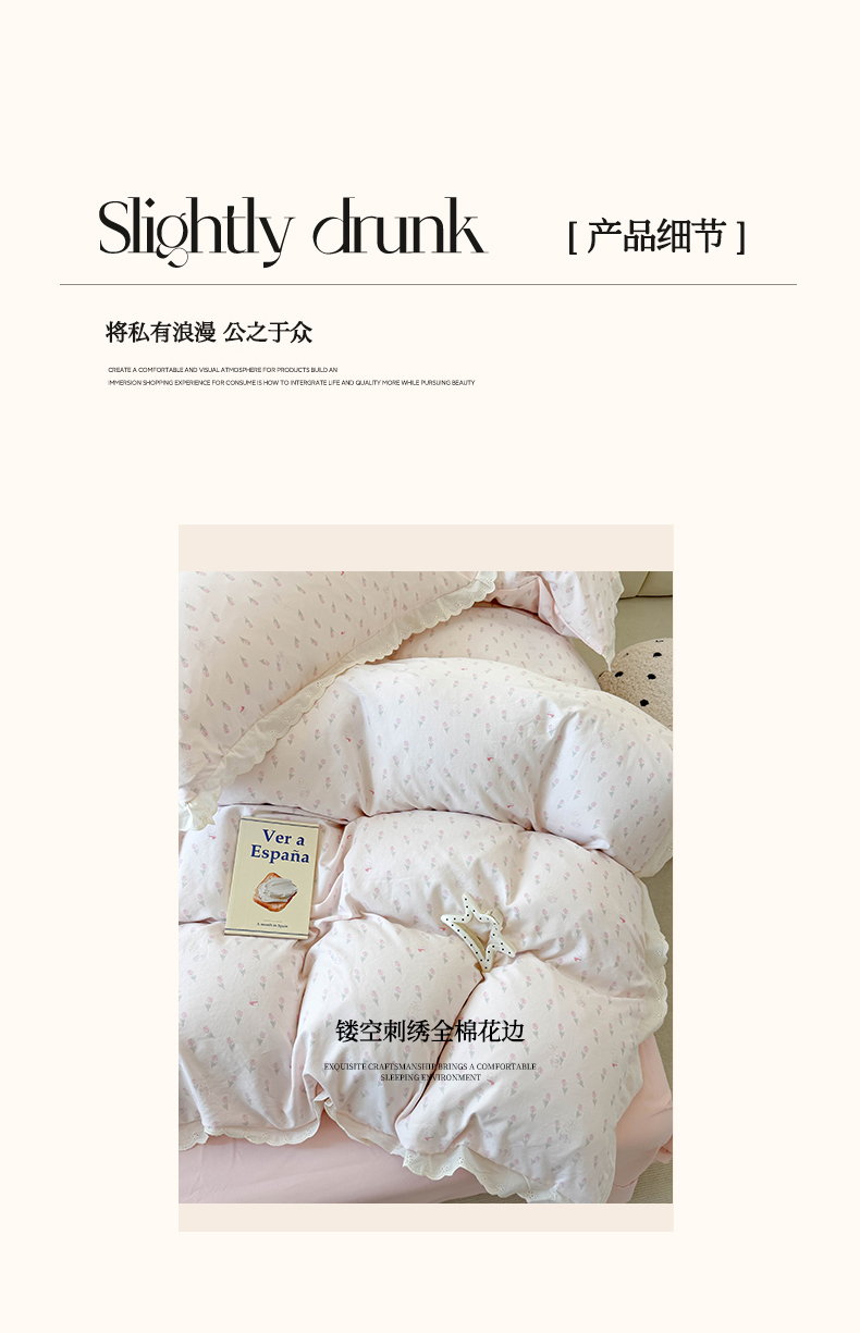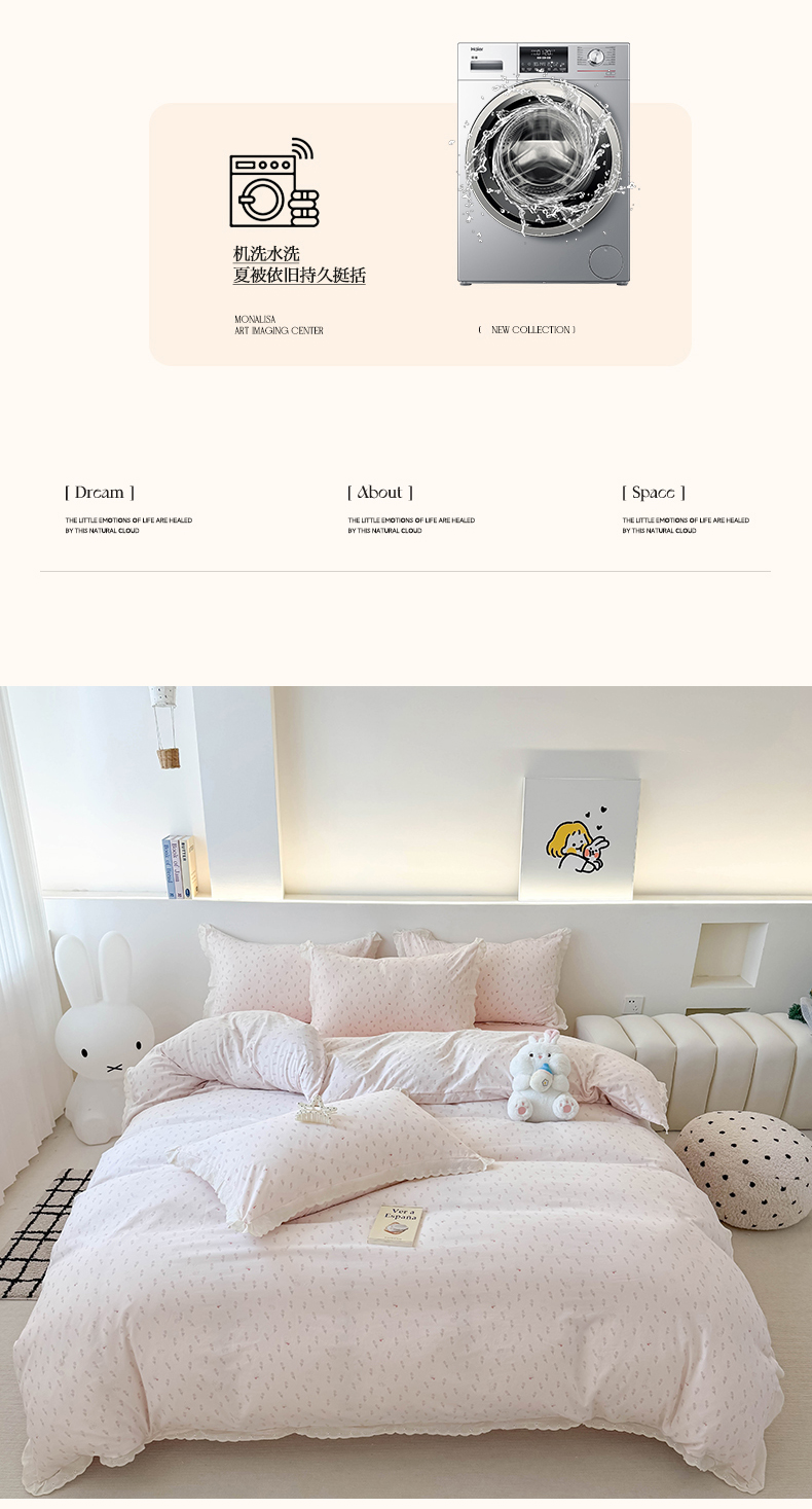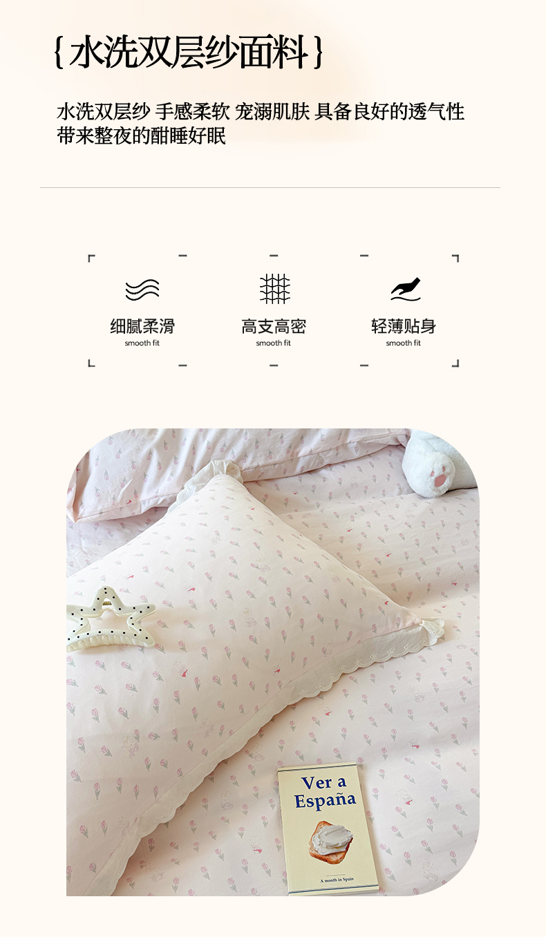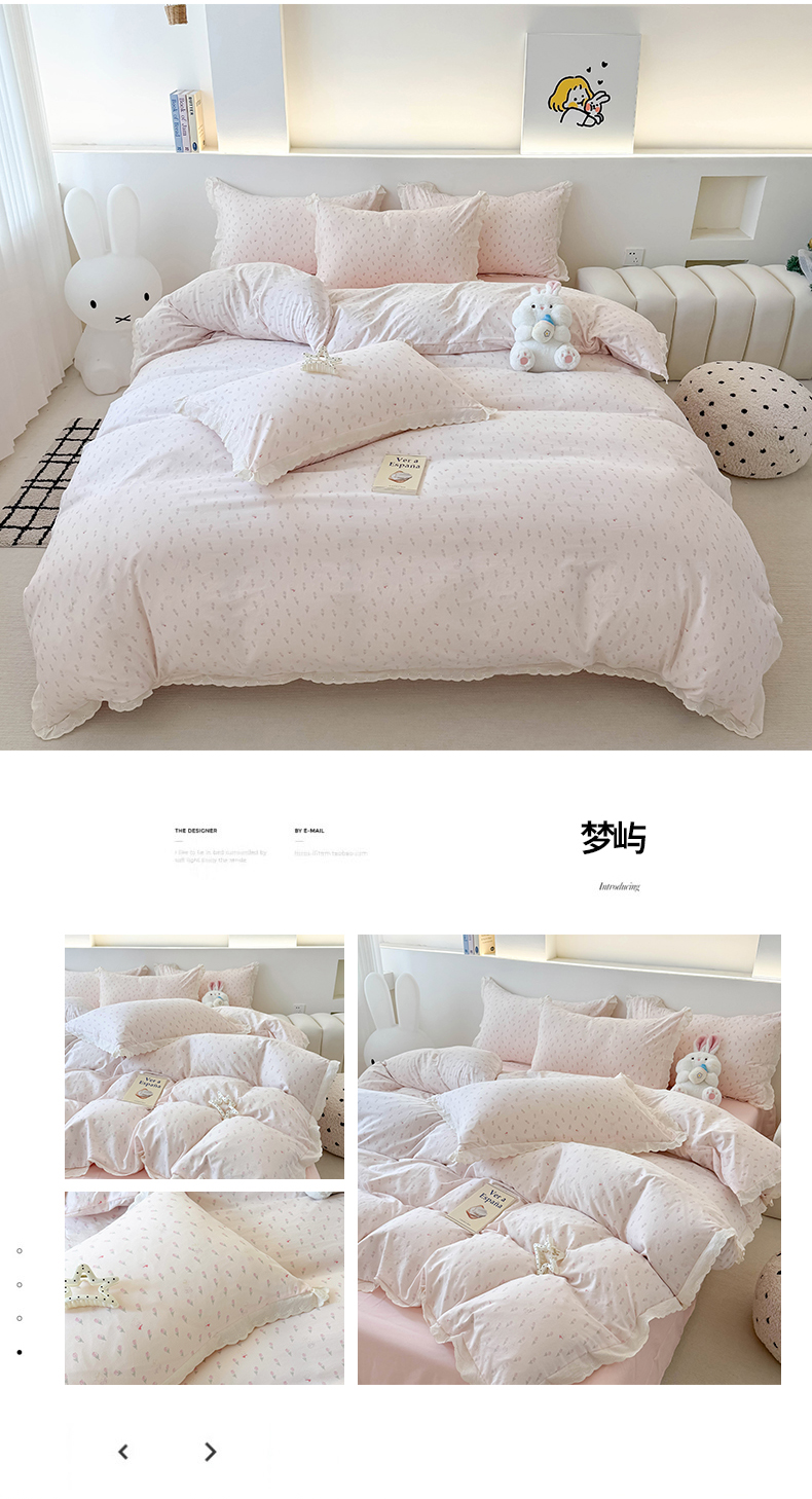 商品名称:吾欢心 2025新款韩版花边水洗双层纱四件套夏被四件套(棚拍图) 梦屿